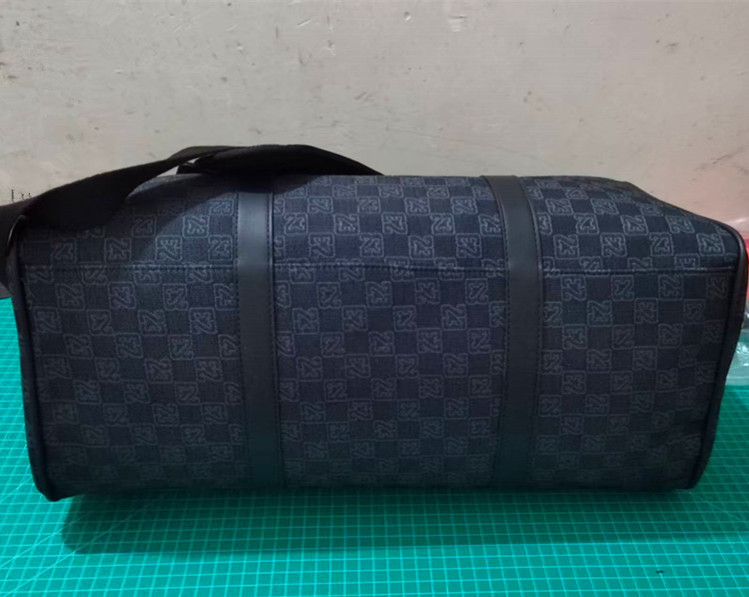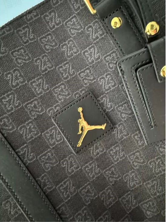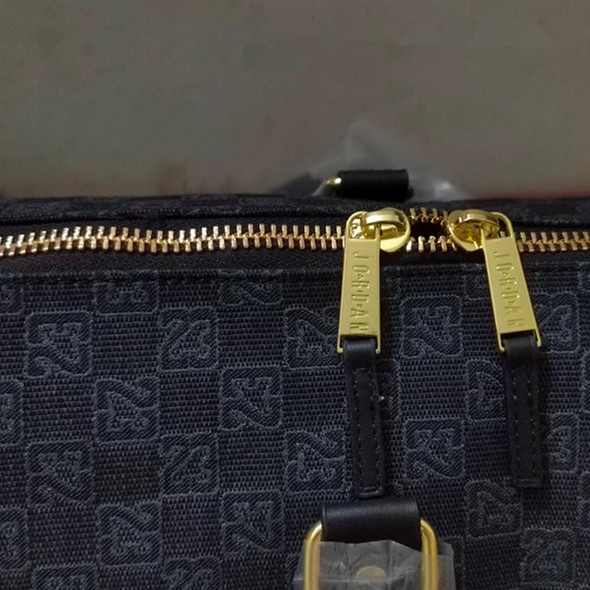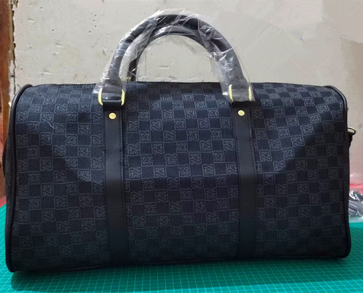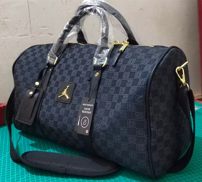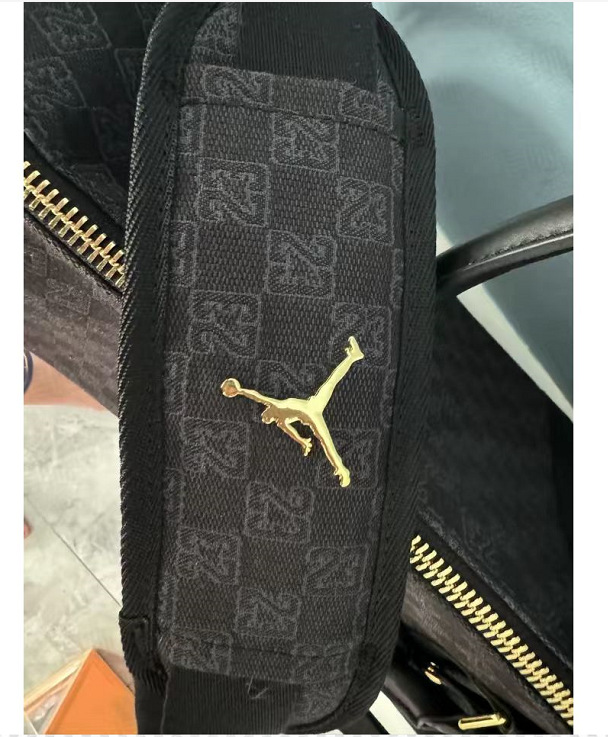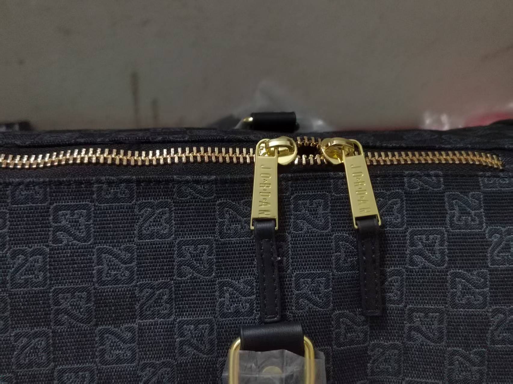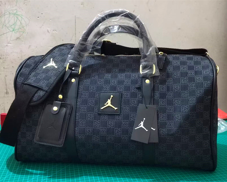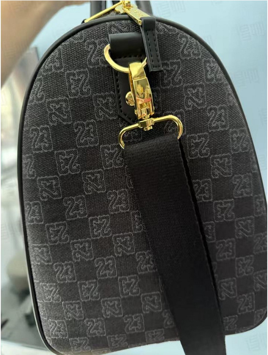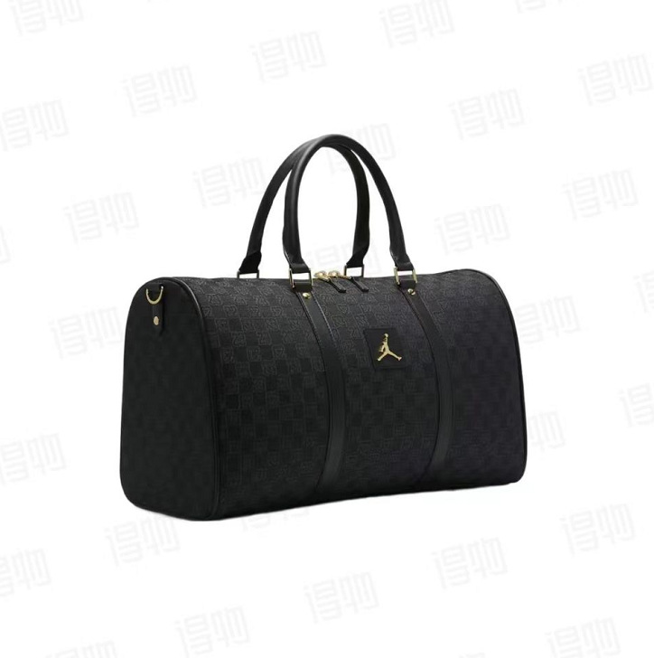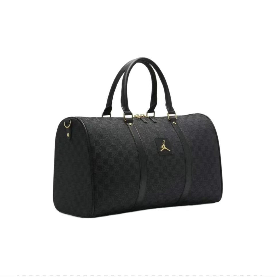 AJ23号棋盘格旅行包,黑色配金标,大容量设计,适合旅行健身通勤。