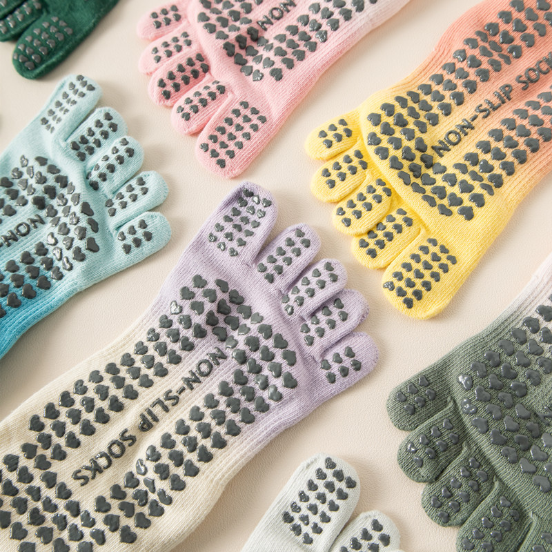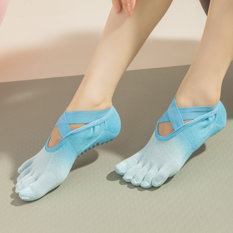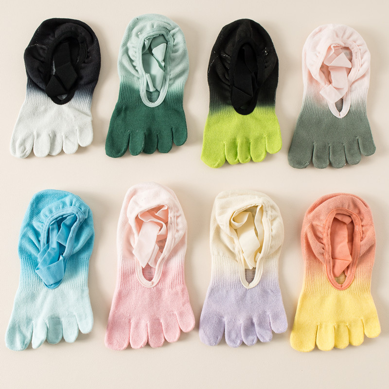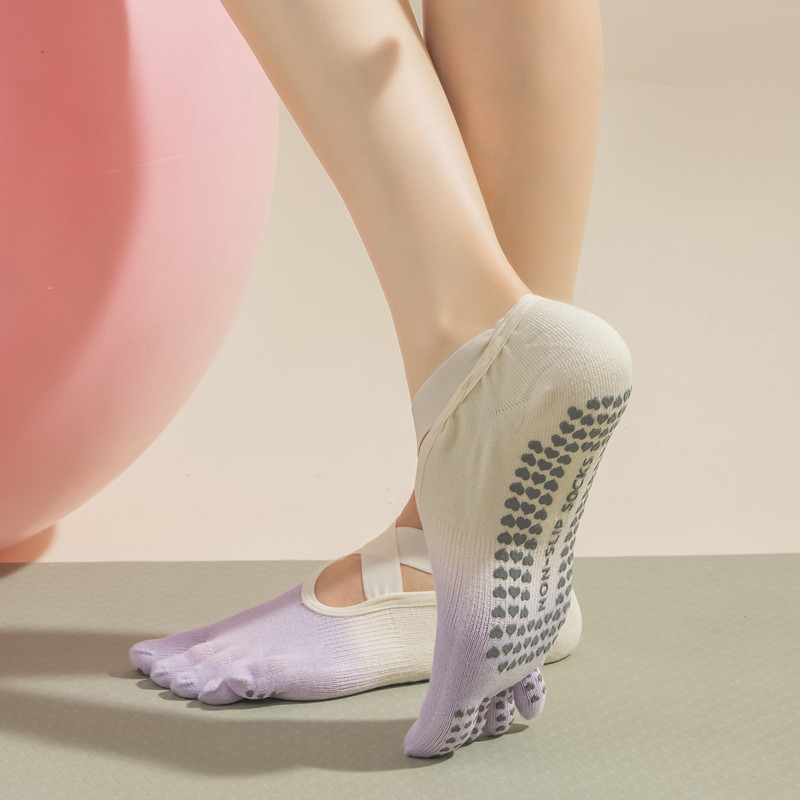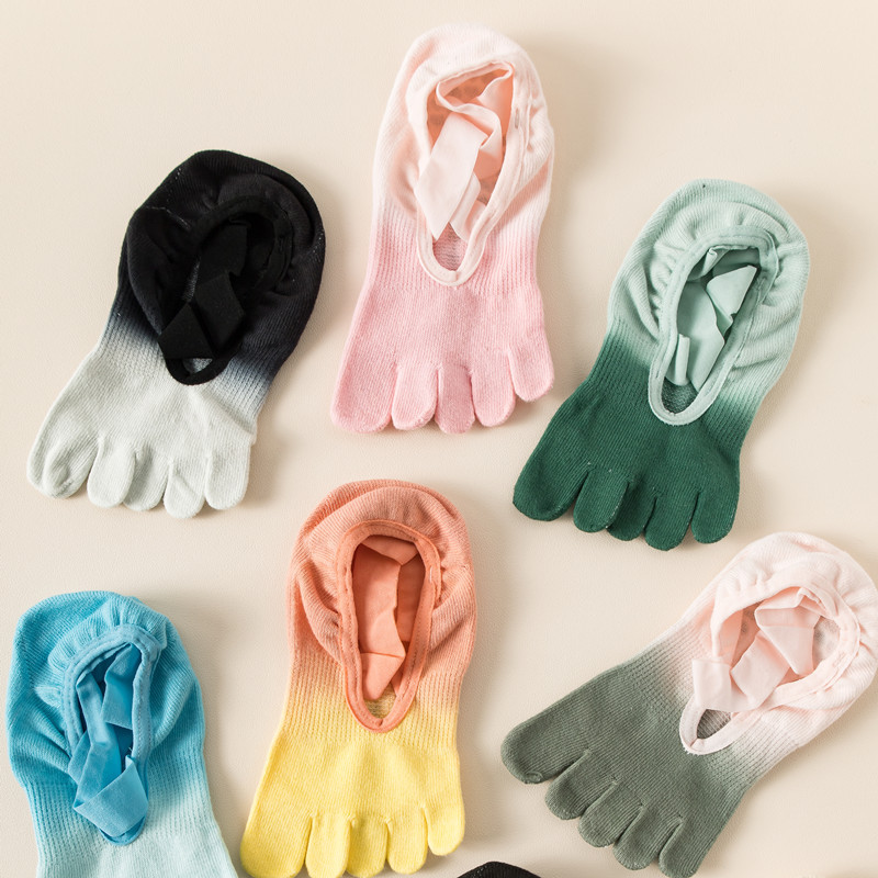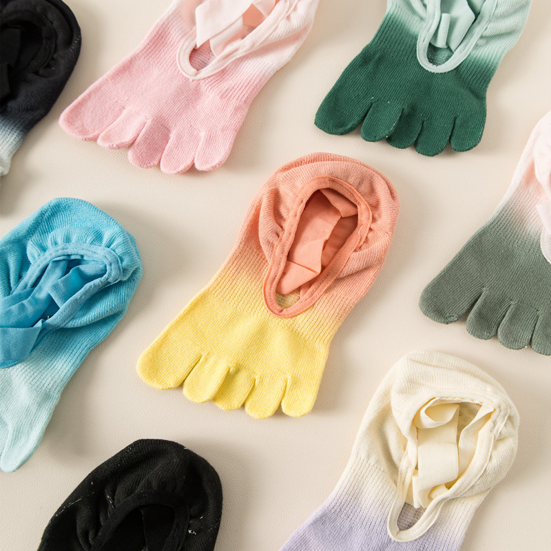 2024 새로운 다섯 손가락 요가 양말 전문 미끄럼 방지 여성 봄과 여름 필라테스 피트니스 댄스 양말 레이스 업 발가락 양말스토어 가기