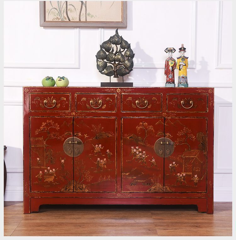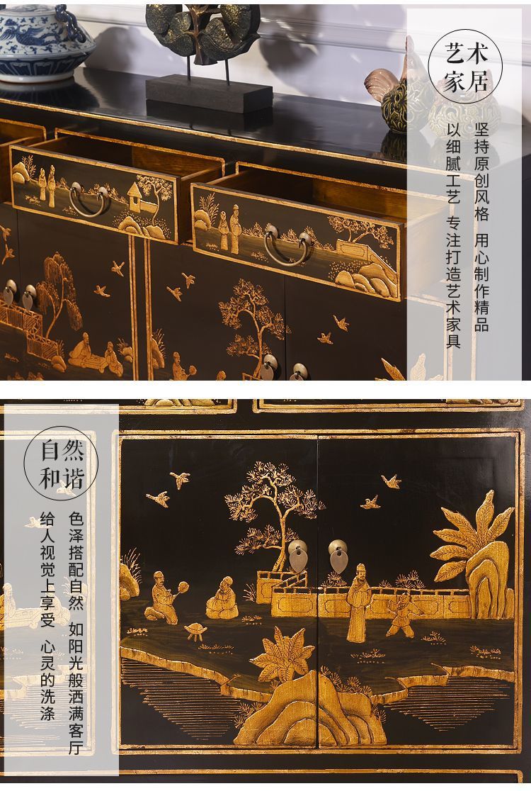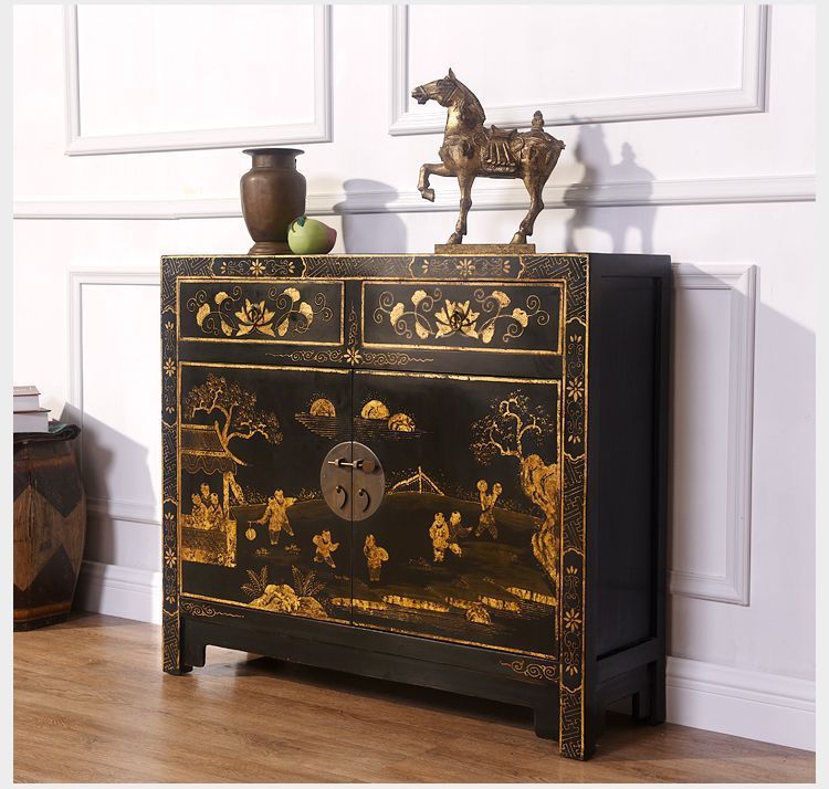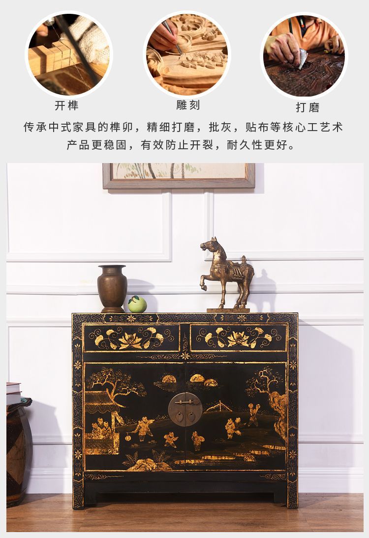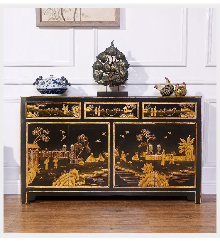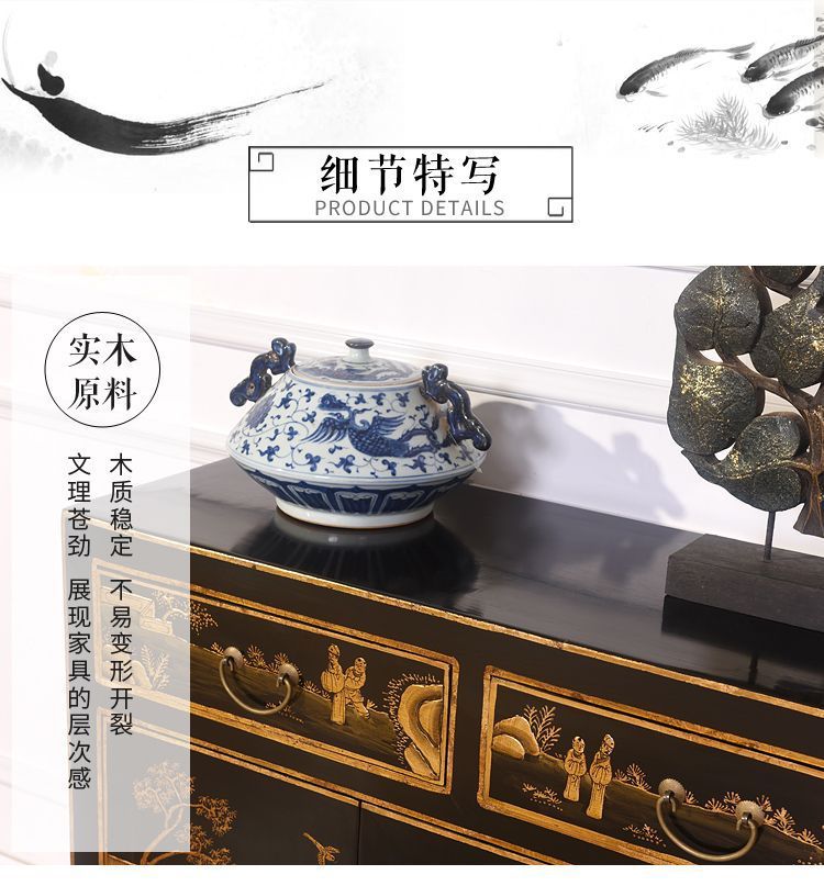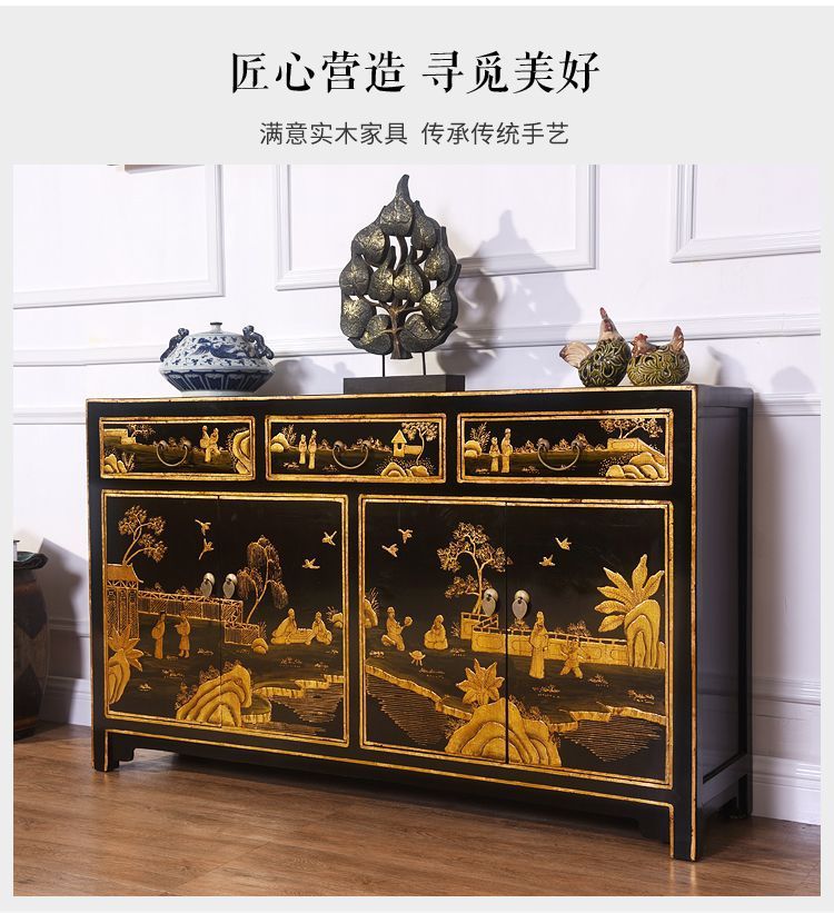 중국 스타일의 단단한 나무 골동품 복도 캐비닛 호텔 선반 빌라 거실 라커 빈티지 골드 장식 캐비닛 재고스토어 가기