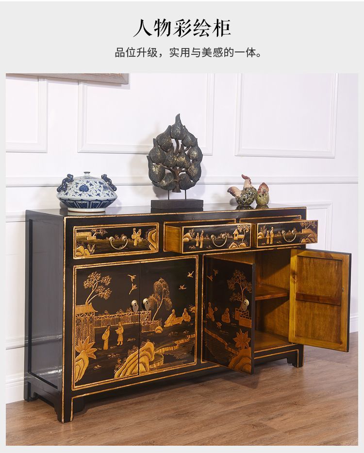중국 스타일의 단단한 나무 골동품 복도 캐비닛 호텔 선반 빌라 거실 라커 빈티지 골드 장식 캐비닛 재고