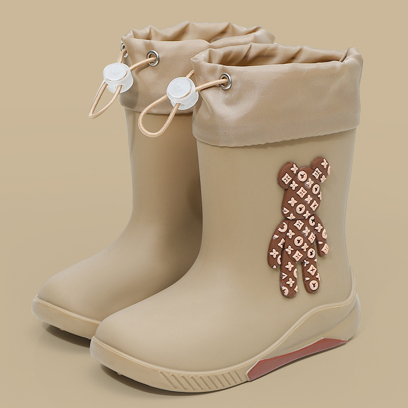 어린이 장화 소년 소녀 장화 비 슬립 드로우 스트링 방수 유아 만화 곰 폐쇄 학생 물 신발 도매