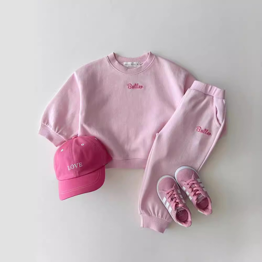 한국 스타일의 다채로운 스웨터 세트 스웨터 + 스웨트 팬츠 봄과 가을 올 매치 세트 단색 영어 문자스토어 가기