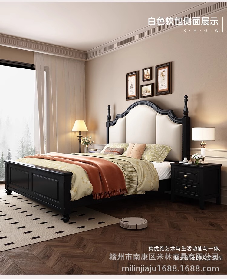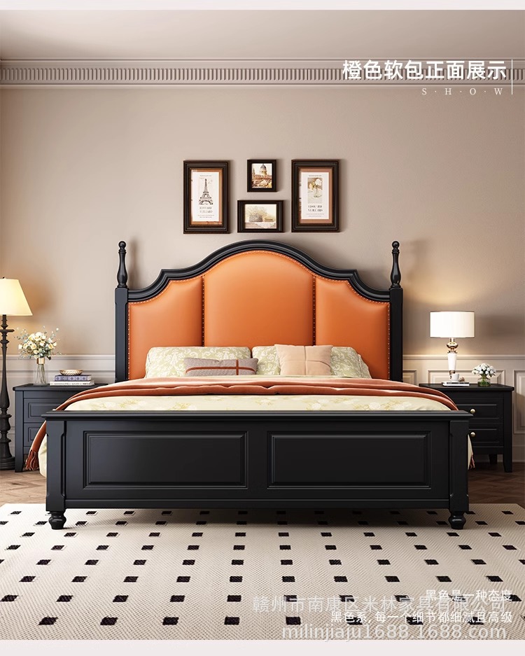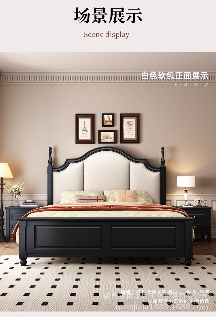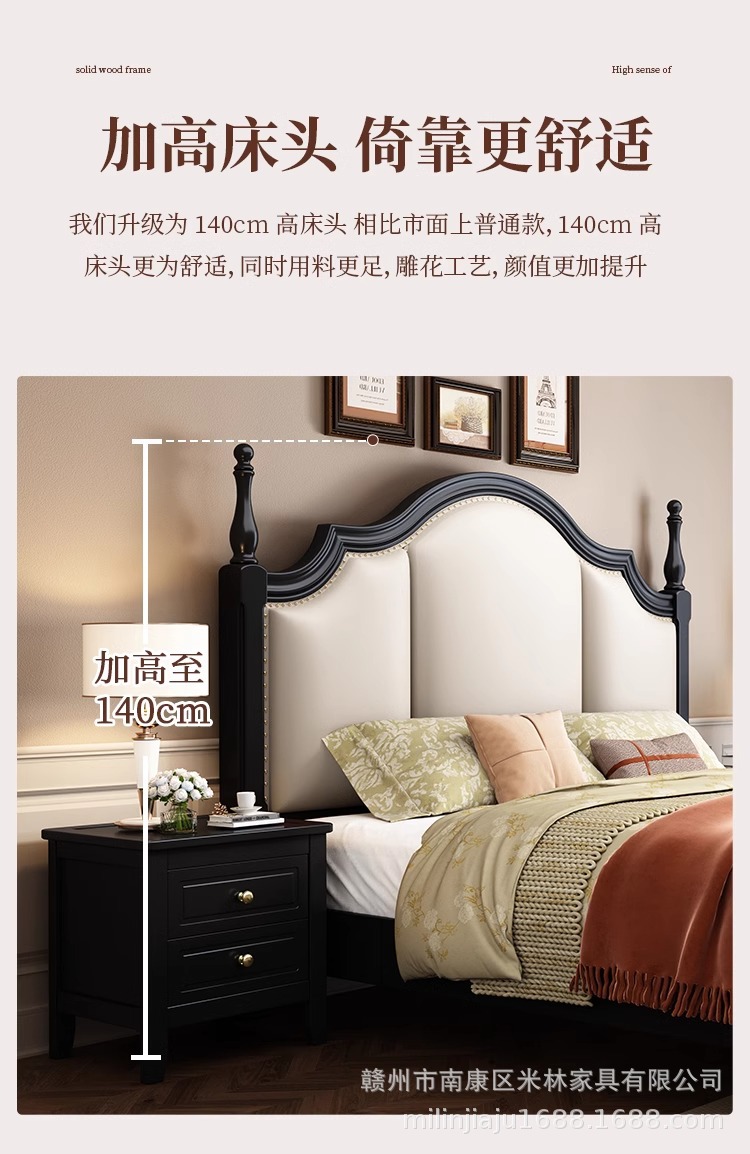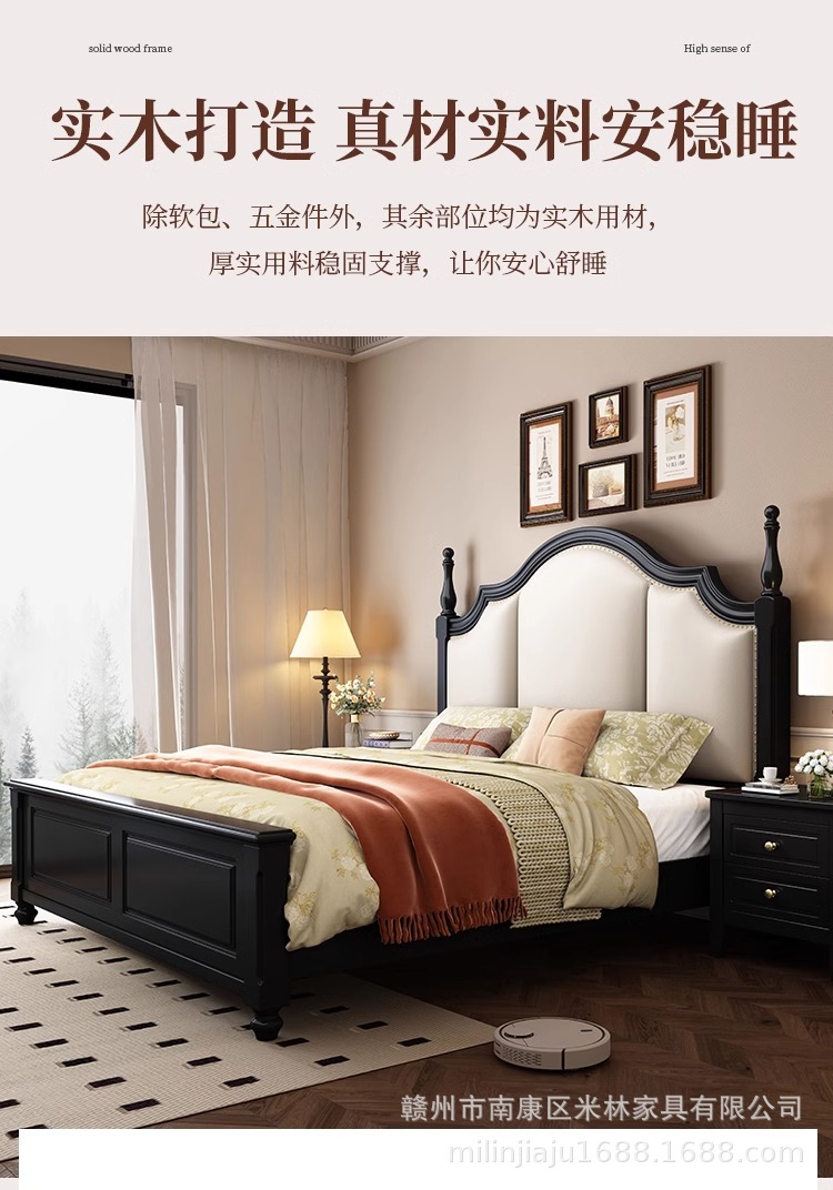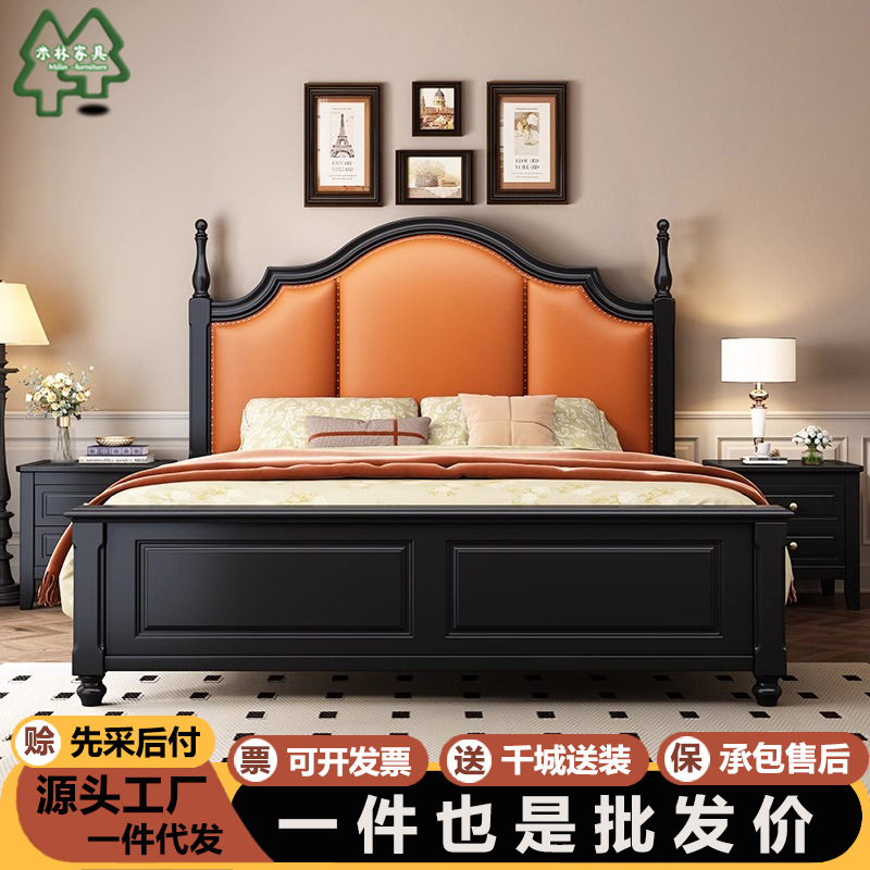 프렌치 원목 침대 마스터 침실 더블 침대 1.5 중세 스타일 블랙 레트로 1.8 미터 공주 라이트 럭셔리 소프트 웨딩 침대스토어 가기