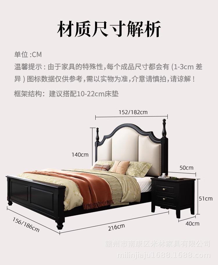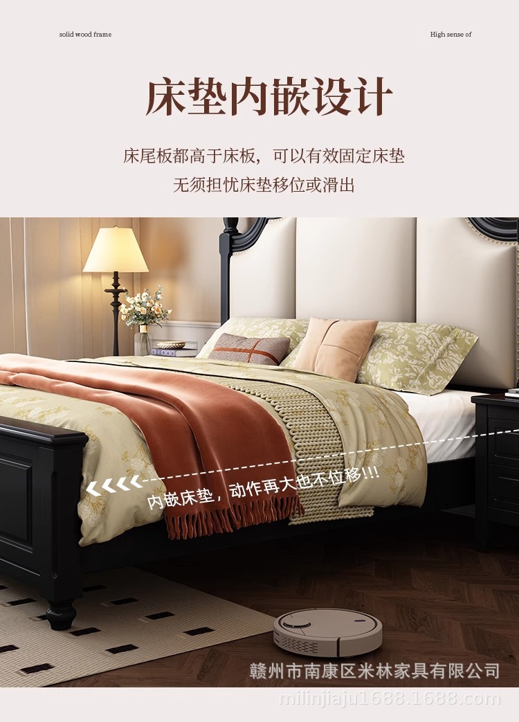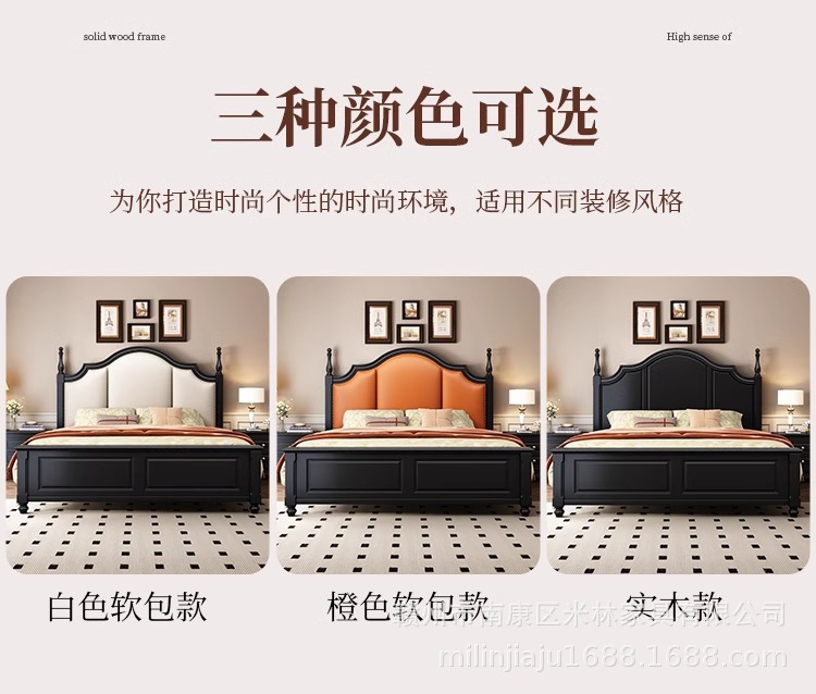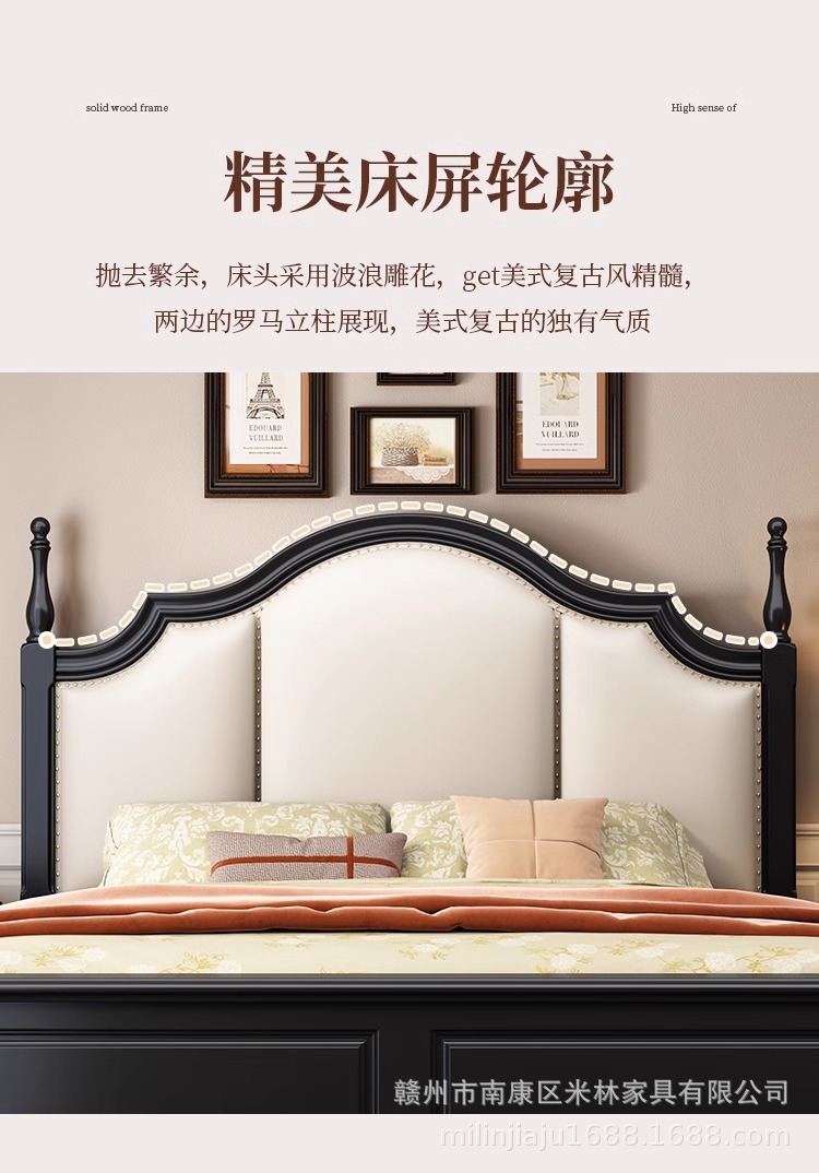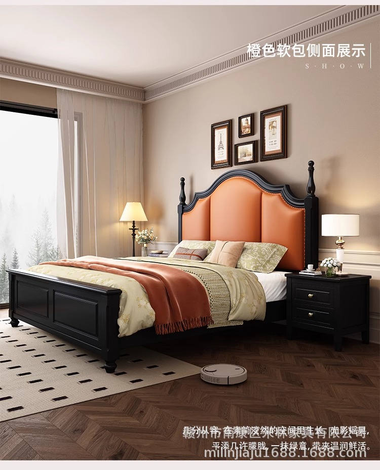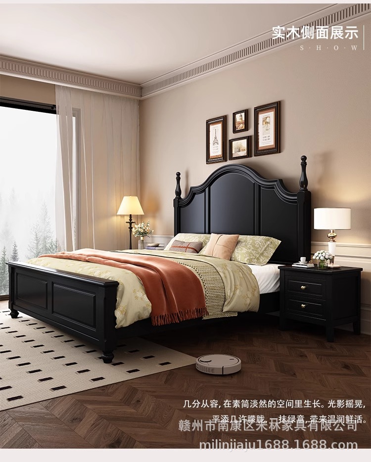 프렌치 원목 침대 마스터 침실 더블 침대 1.5 중세 스타일 블랙 레트로 1.8 미터 공주 라이트 럭셔리 소프트 웨딩 침대스토어 가기