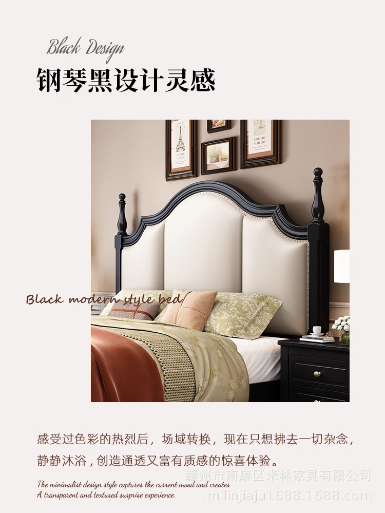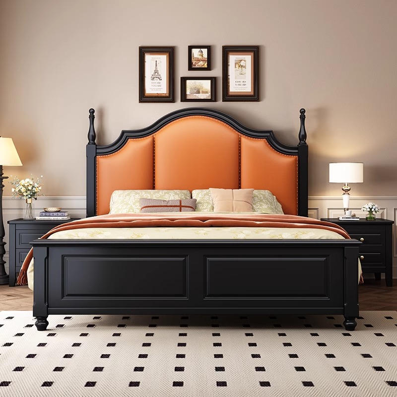 프렌치 원목 침대 마스터 침실 더블 침대 1.5 중세 스타일 블랙 레트로 1.8 미터 공주 라이트 럭셔리 소프트 웨딩 침대