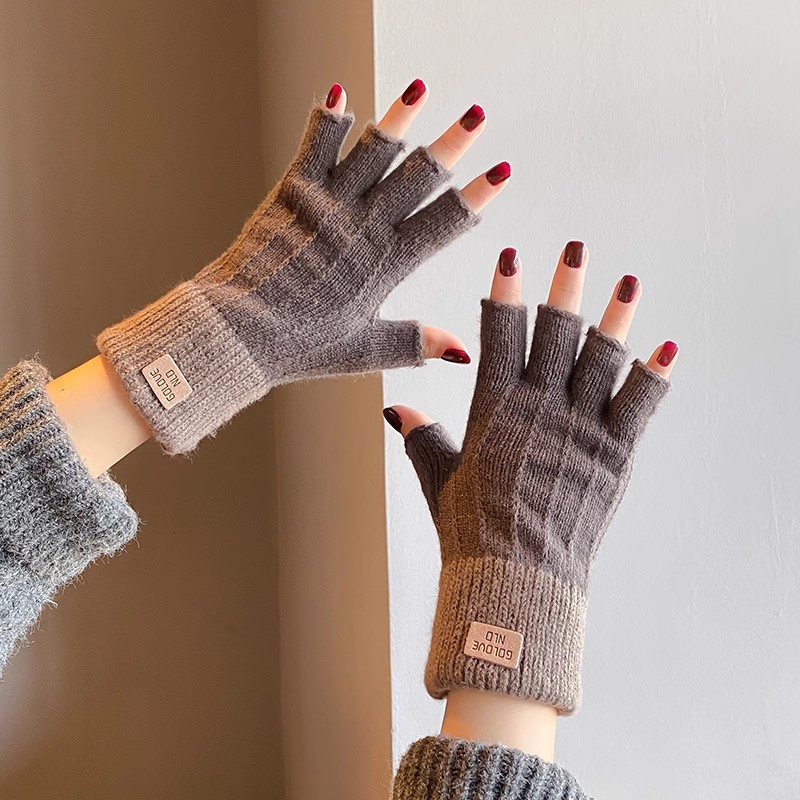 겨울 학생 반 손가락 장갑 울 니트 기모 터치 스크린 쓰기 비 슬립 오픈 핑거 따뜻한 장갑 사이클링