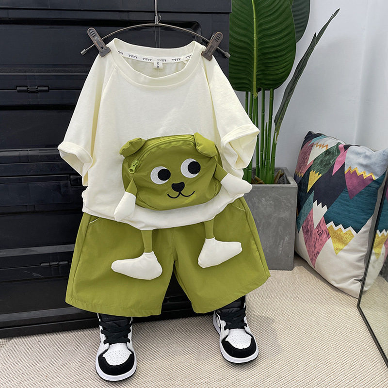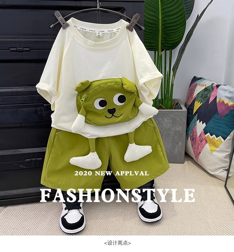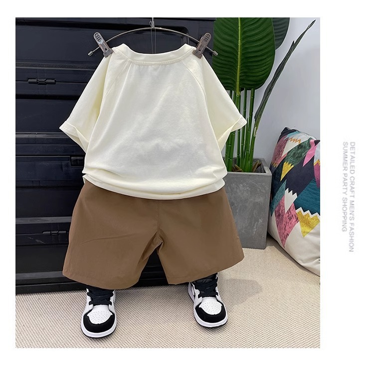 2023 새로운 아동복 여름 세트 반팔 여름 옷 서양식 소년과 아이들의 아기 옷 유행 투피스 세트스토어 가기