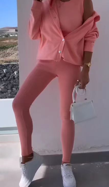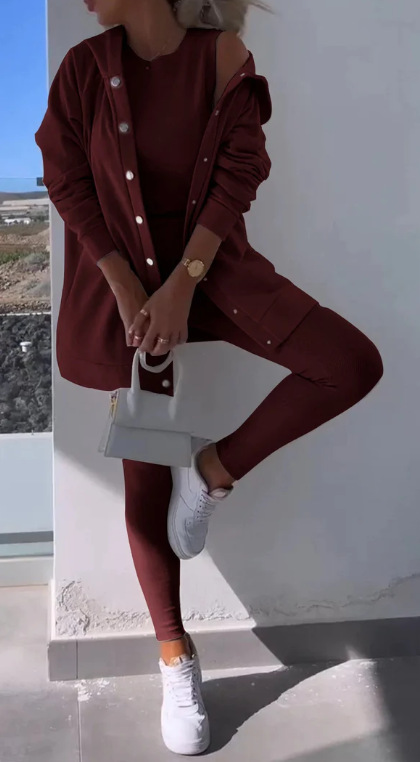 2024 봄 새로운 여성 스포츠 캐주얼 후드 스웨터 두꺼운 실 슬림 조끼 바지 3 피스 세트