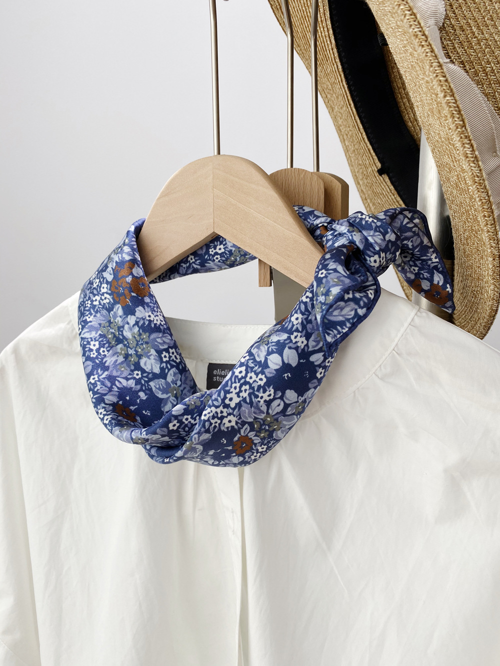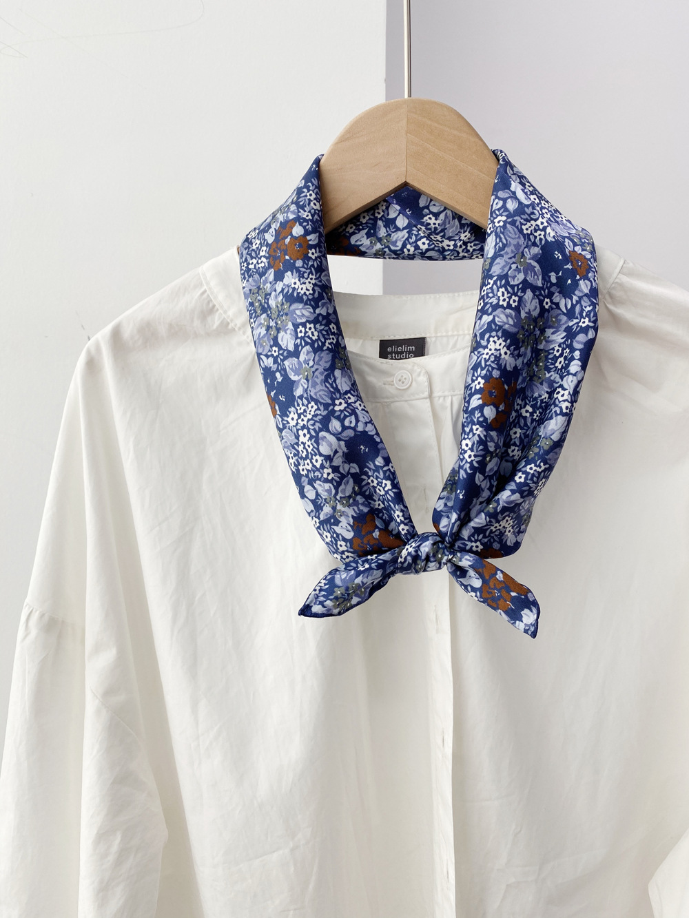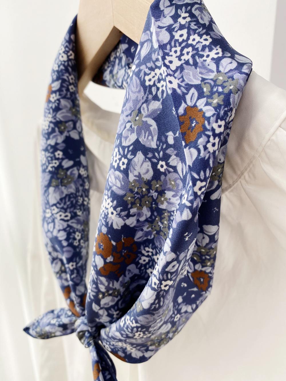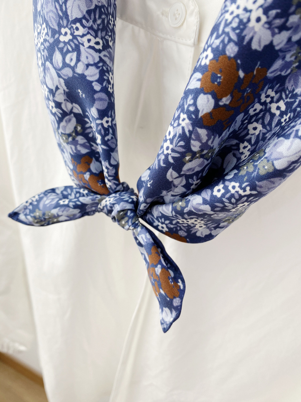 봄과 가을 2020 실크 트윌 실크 스카프 작은 사각형 스카프 다목적 서양식 뽕나무 실크 스카프 파란색 배경 흰색 꽃스토어 가기