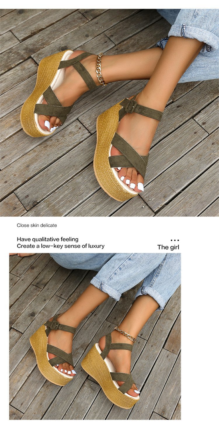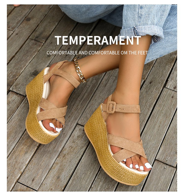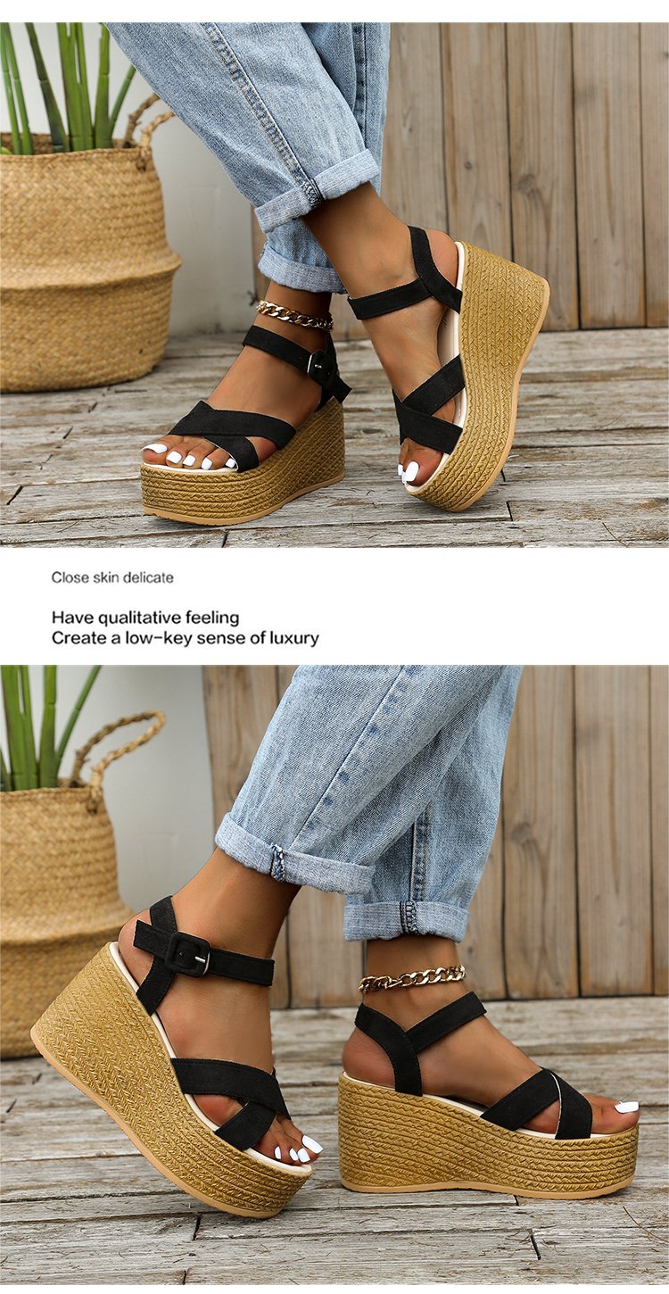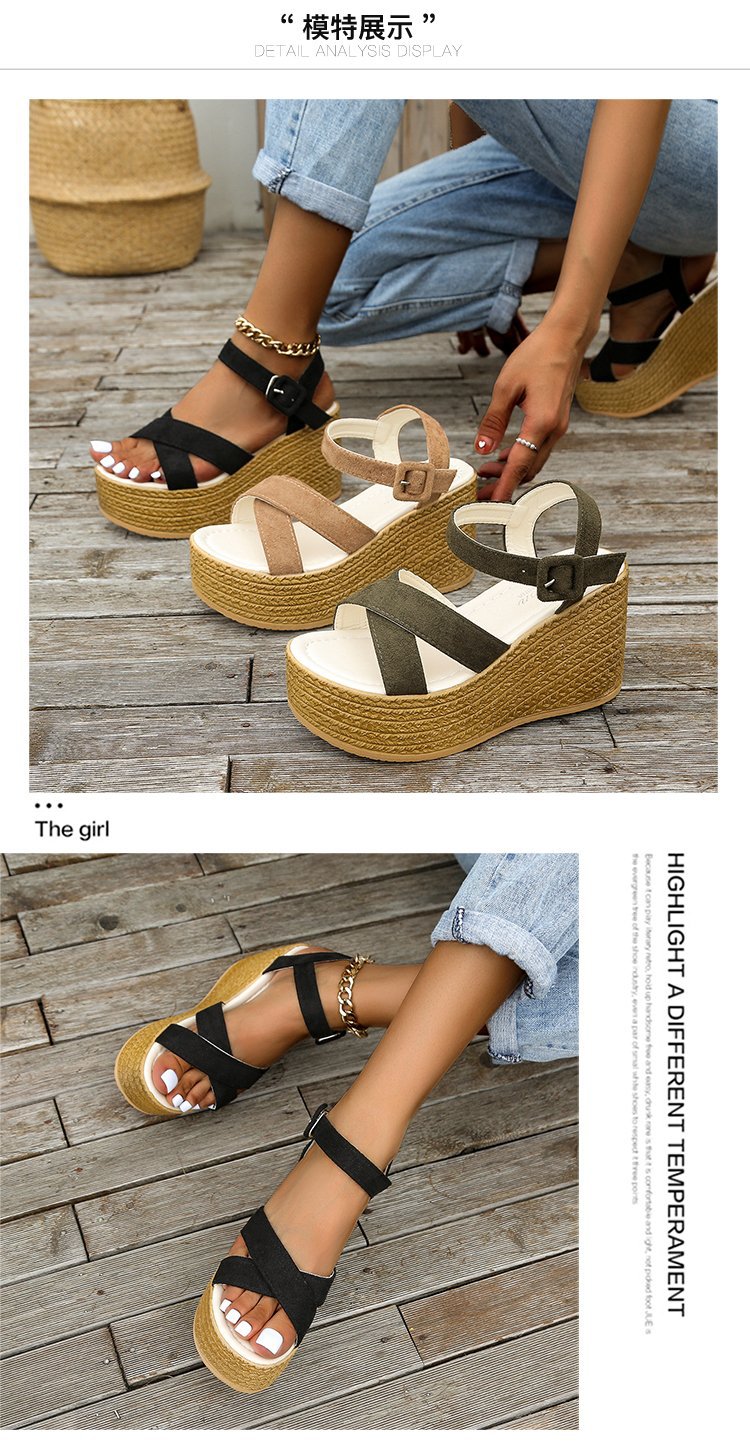 2024 여름 새로운 대외 무역 플러스 사이즈 여성 플랫폼 웨지 샌들 버클 디자인 유럽과 미국 스타일의 폴리 우레탄 솔