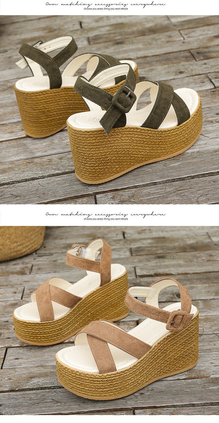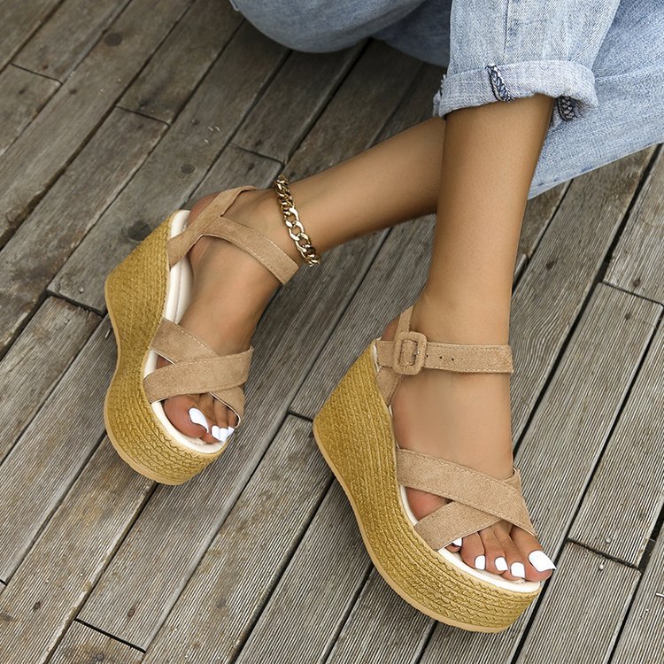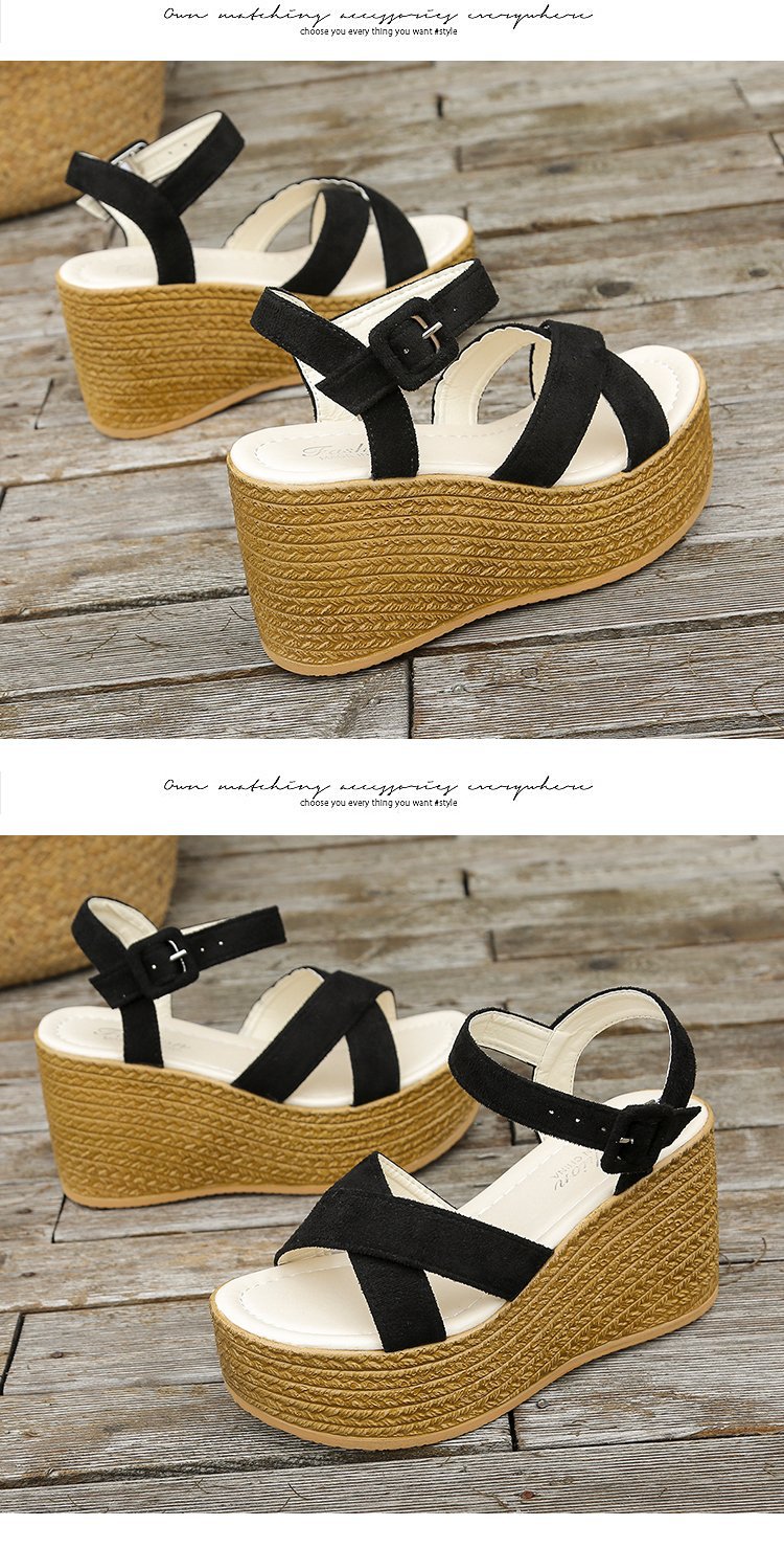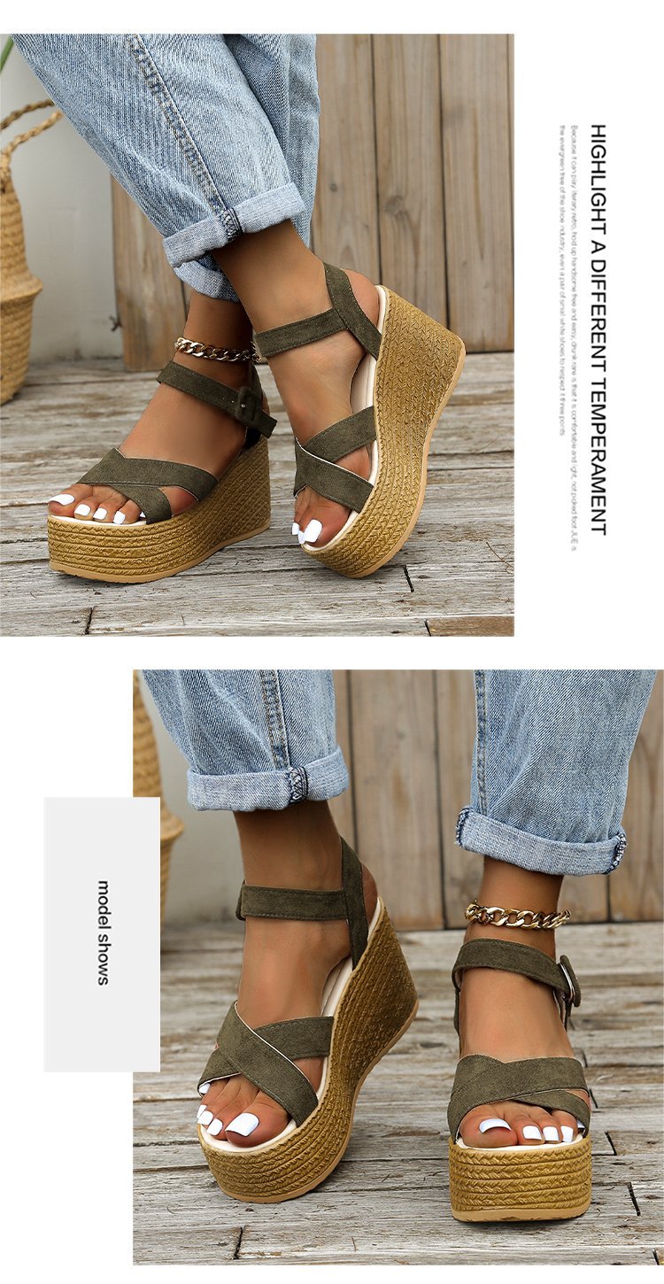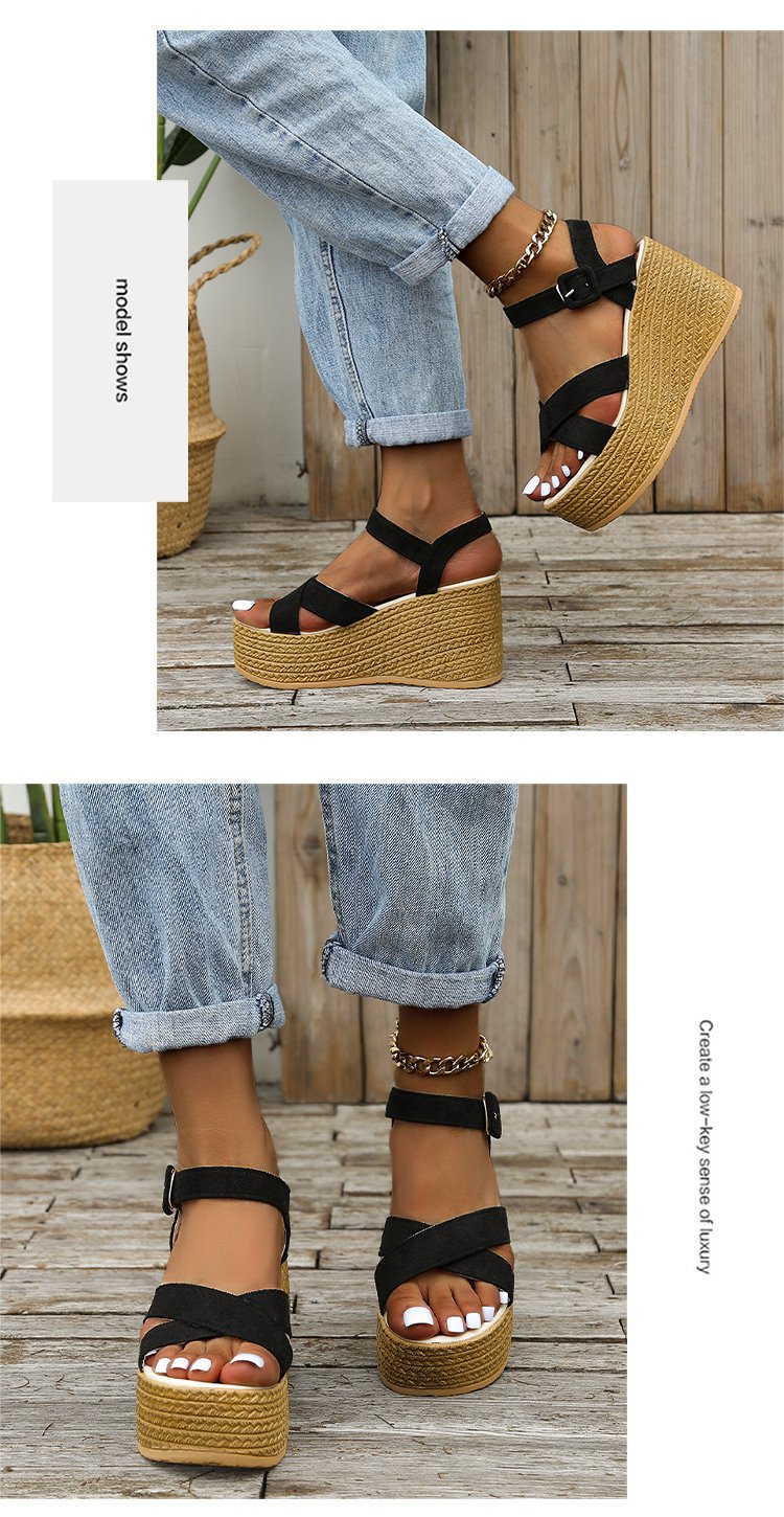 2024 여름 새로운 대외 무역 플러스 사이즈 여성 플랫폼 웨지 샌들 버클 디자인 유럽과 미국 스타일의 폴리 우레탄 솔