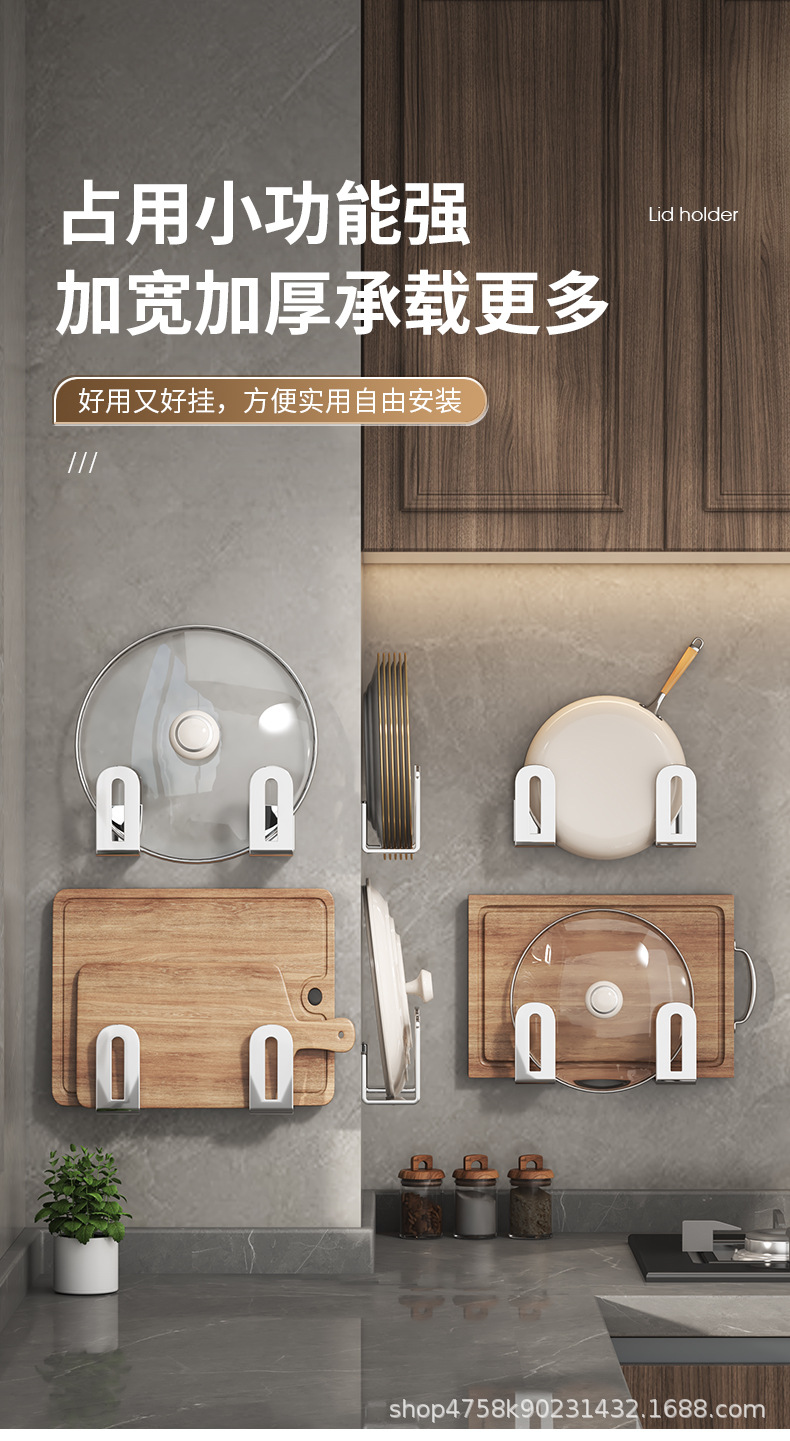 펀치없는 냄비 커버 랙 주방 도마 스토리지 랙 욕실 선반 벽에 장착 된 다기능 벽 보관 유물