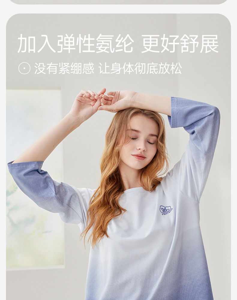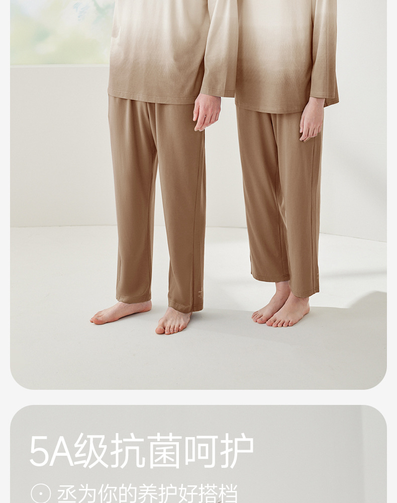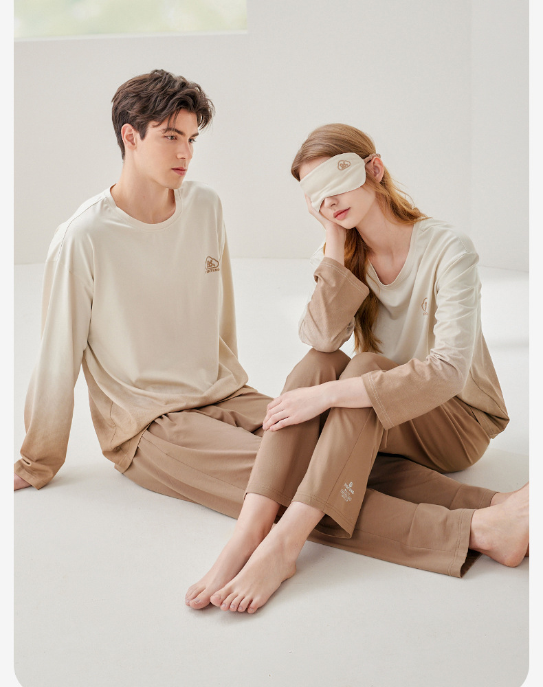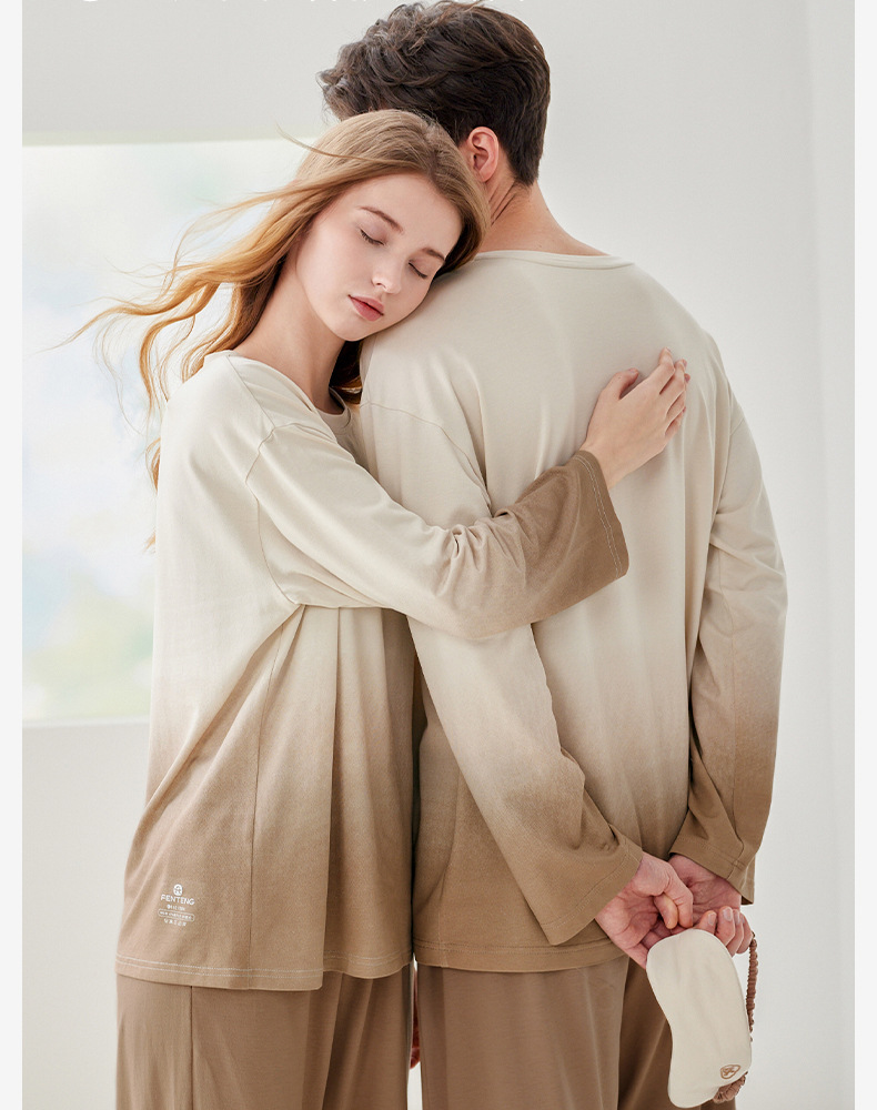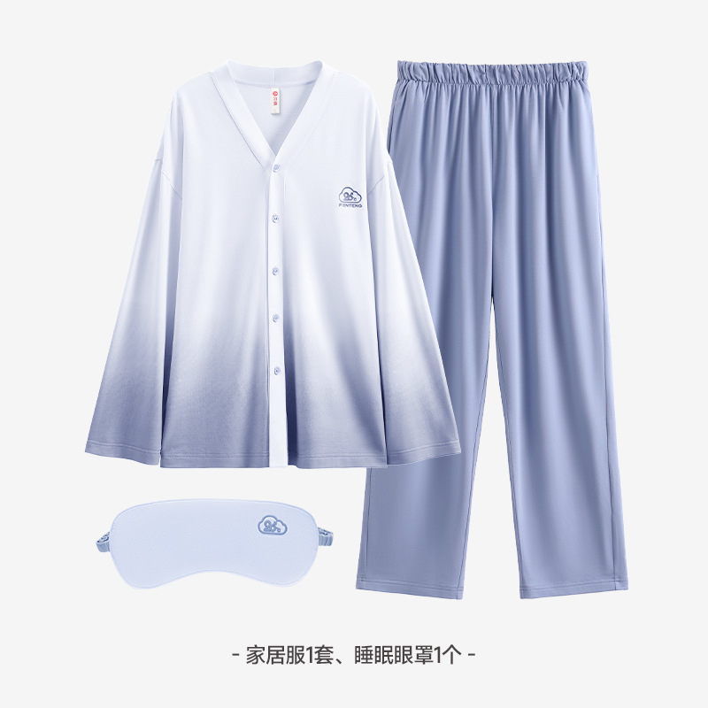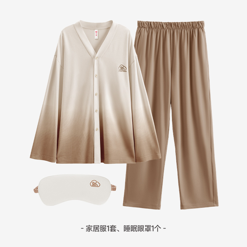 Finteng [팬 Xiaoxiao와 같은 스타일] 일정한 온도 커플 긴팔 파자마 여성 모달면 봄과 가을 항균 남성용 홈 웨어