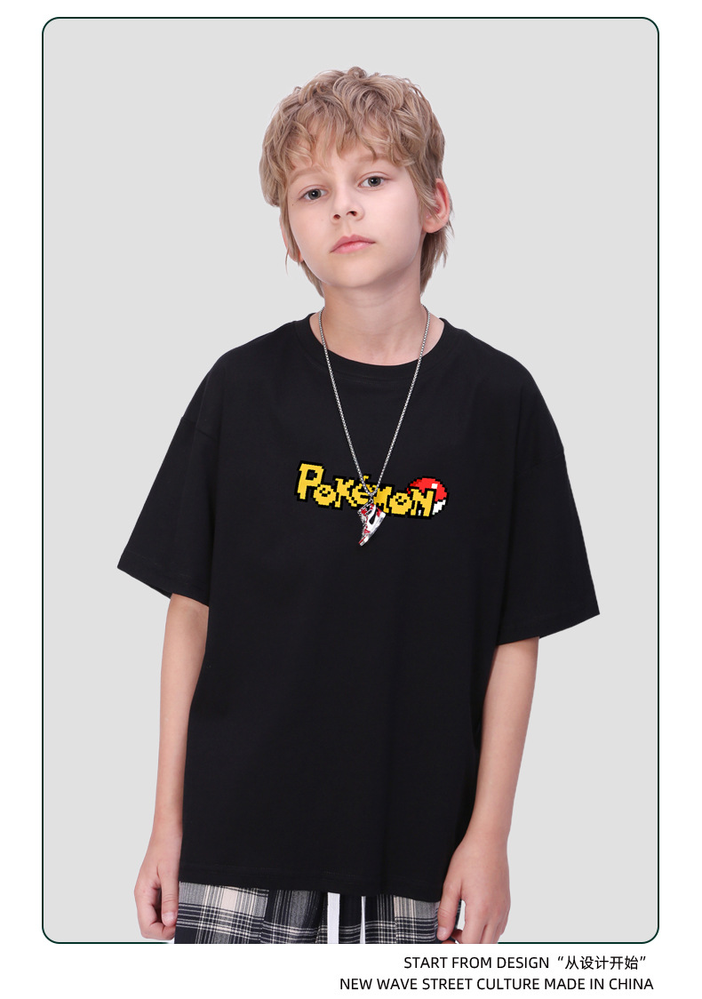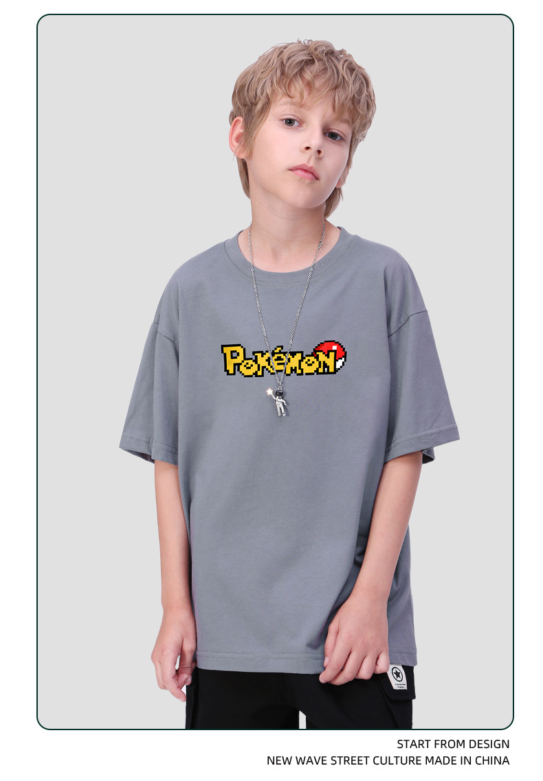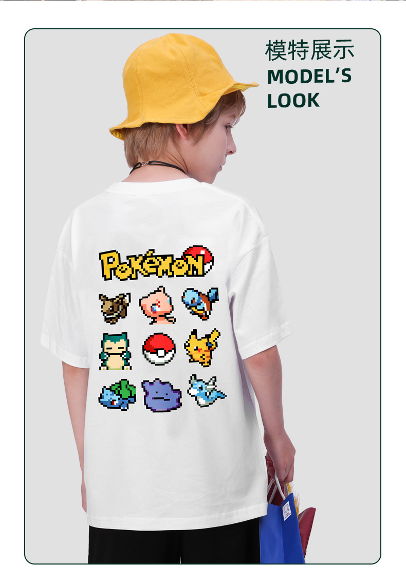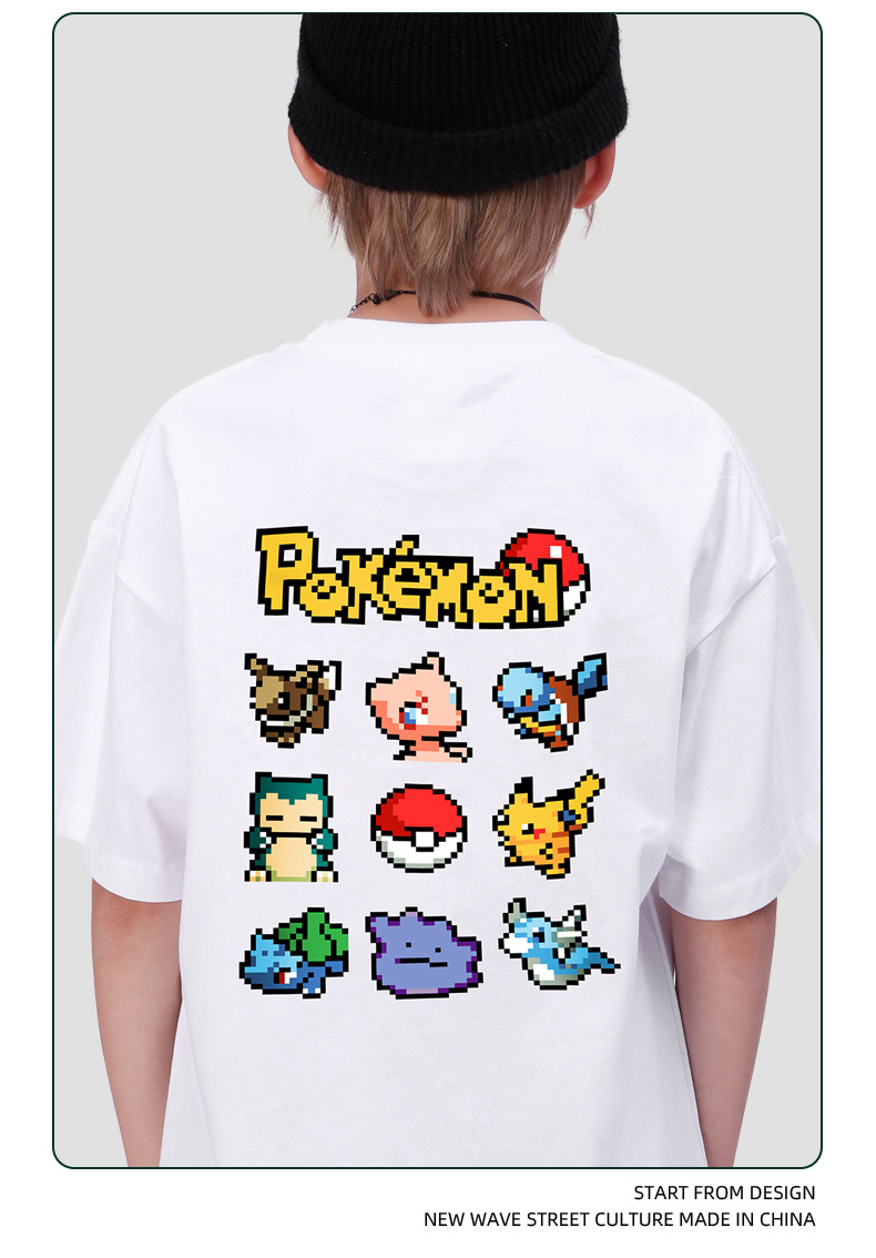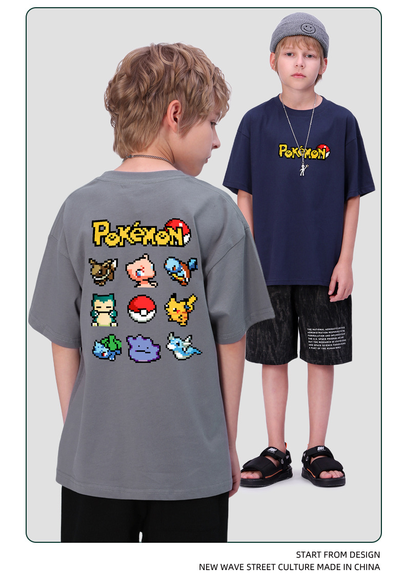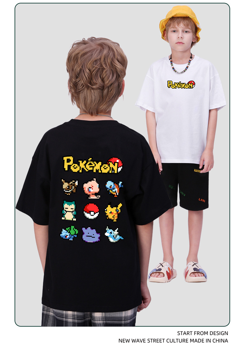 2025 여름 코튼 탑 포켓몬 만화 아바타 모자이크 조합 프린트 티셔츠 소년 소녀 의류 대형 바디