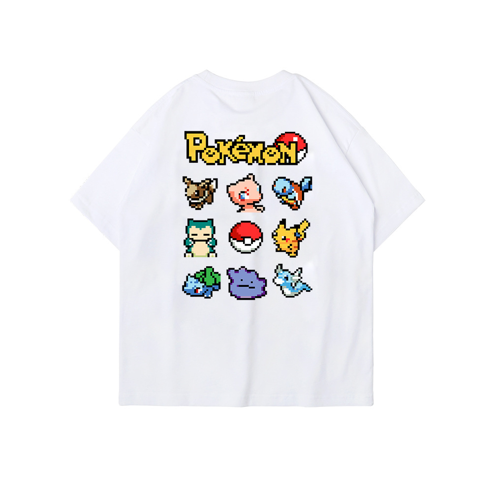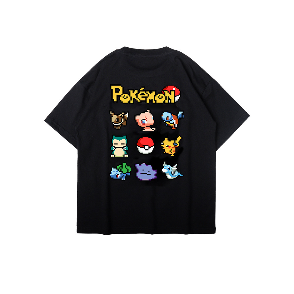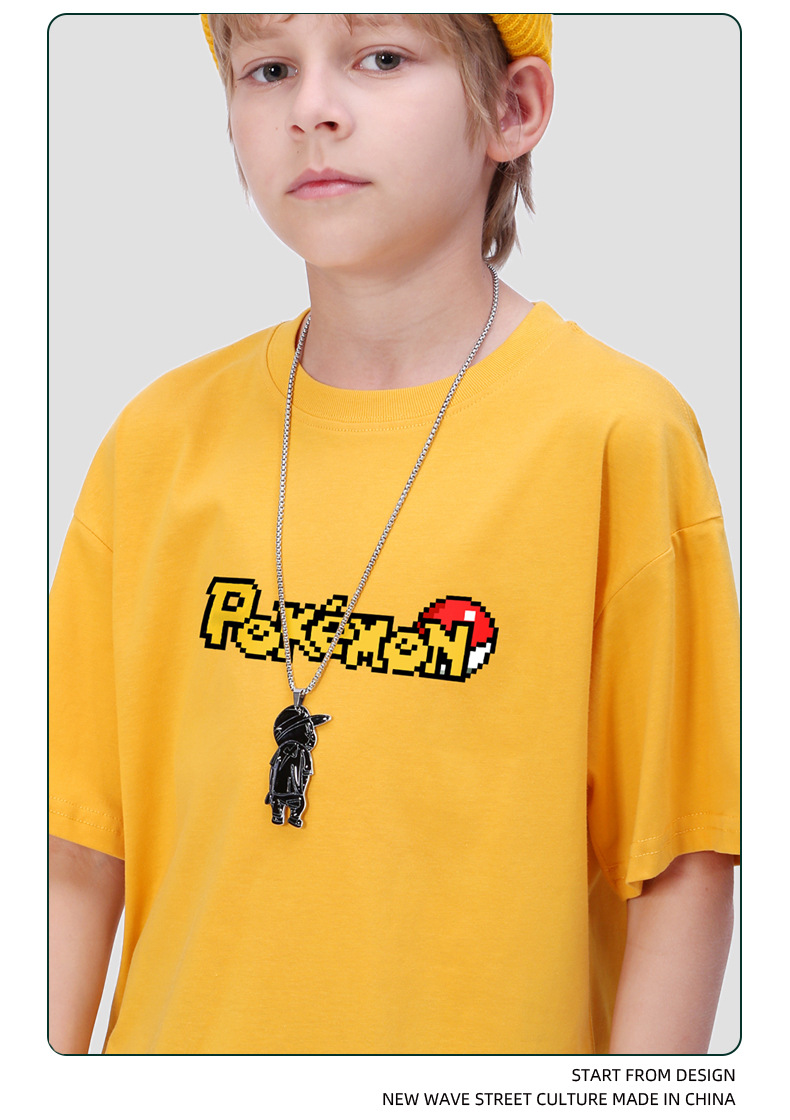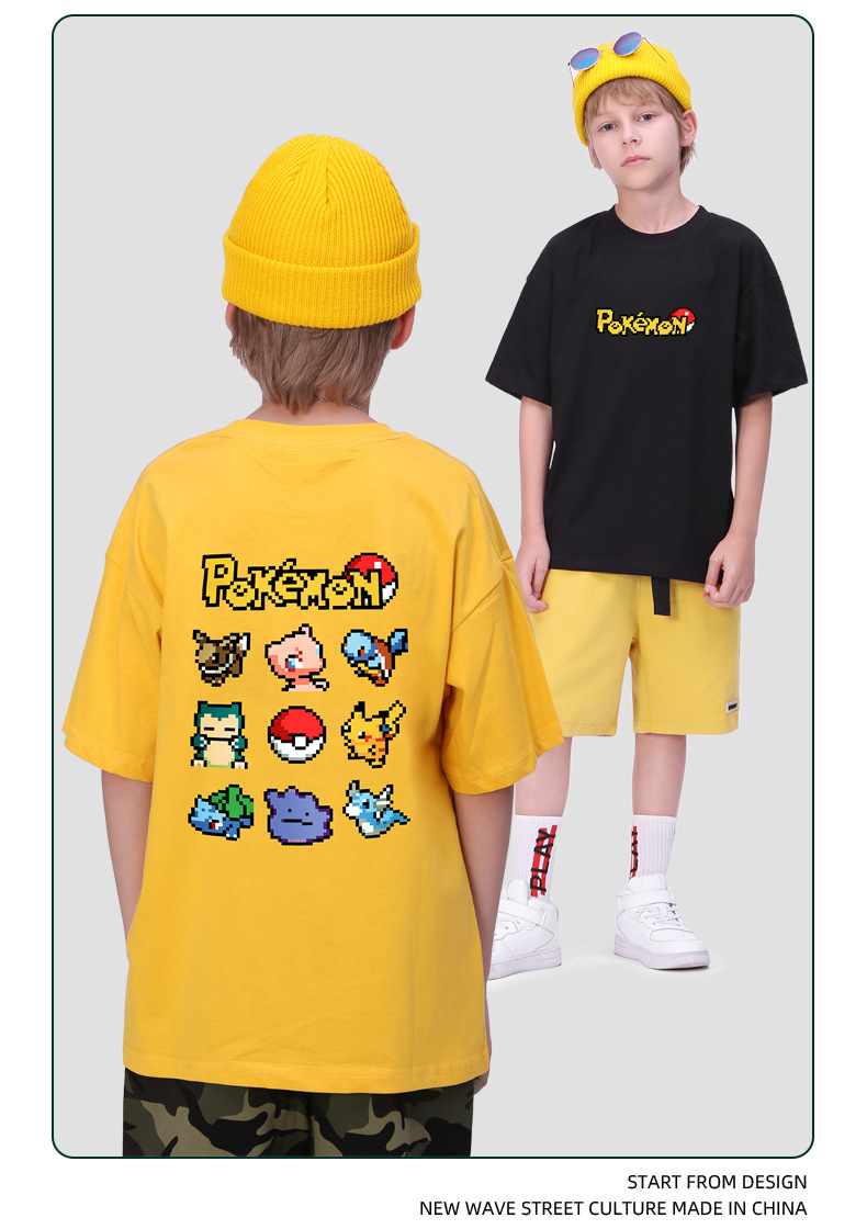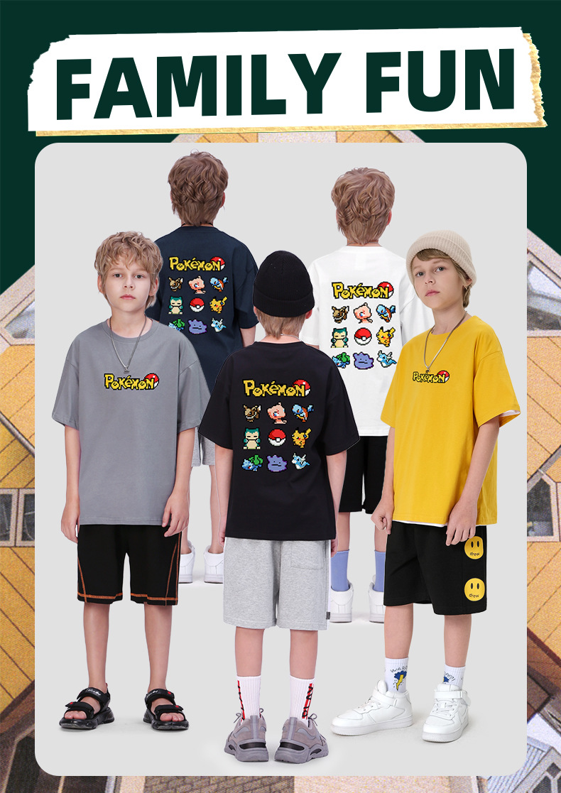 2025 여름 코튼 탑 포켓몬 만화 아바타 모자이크 조합 프린트 티셔츠 소년 소녀 의류 대형 바디