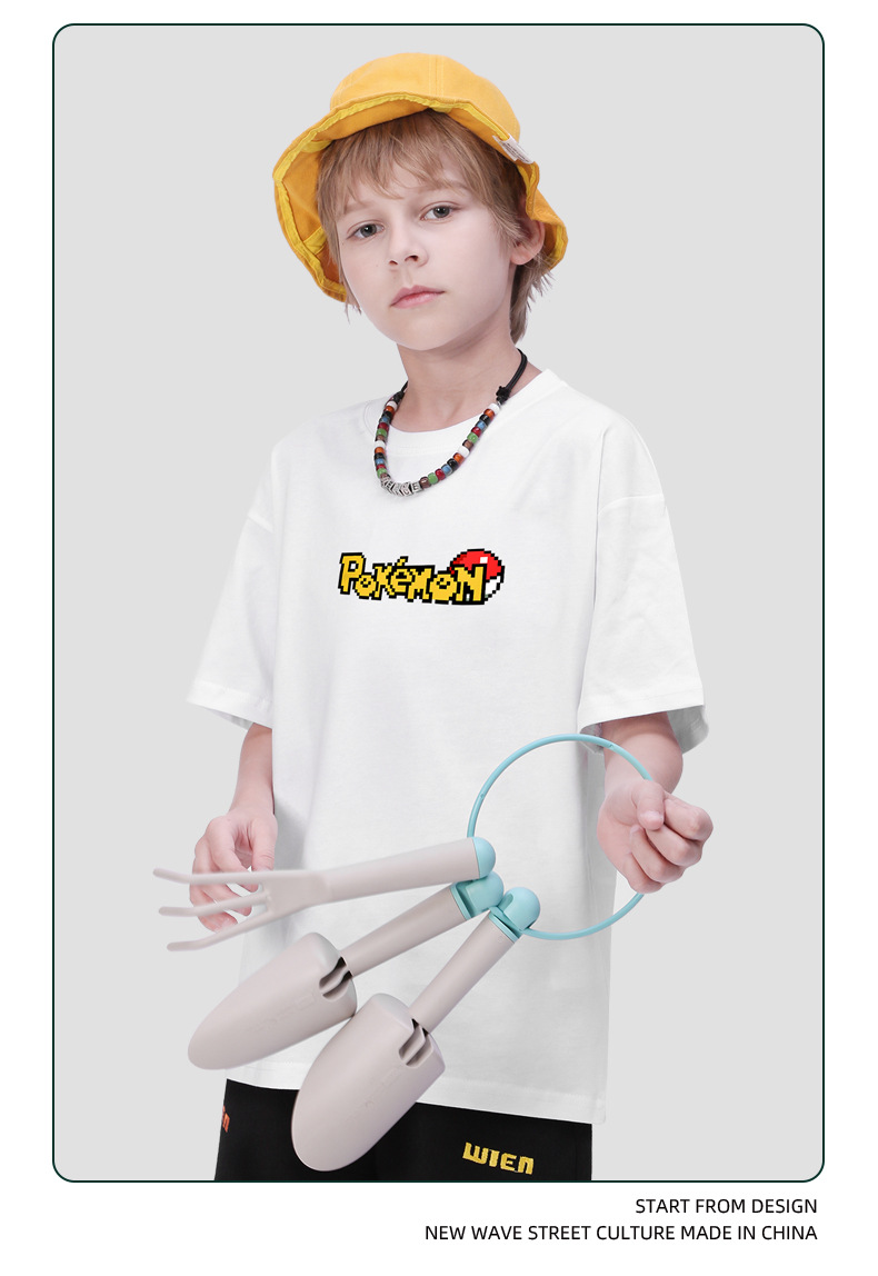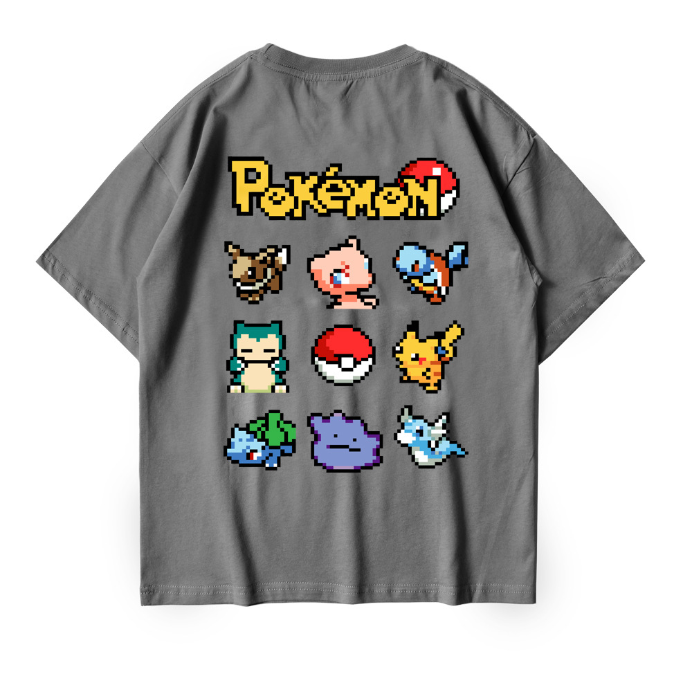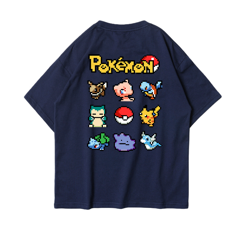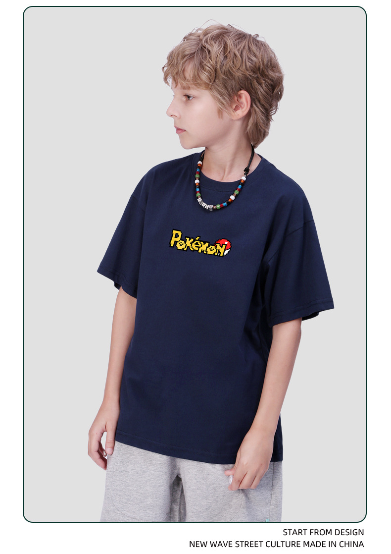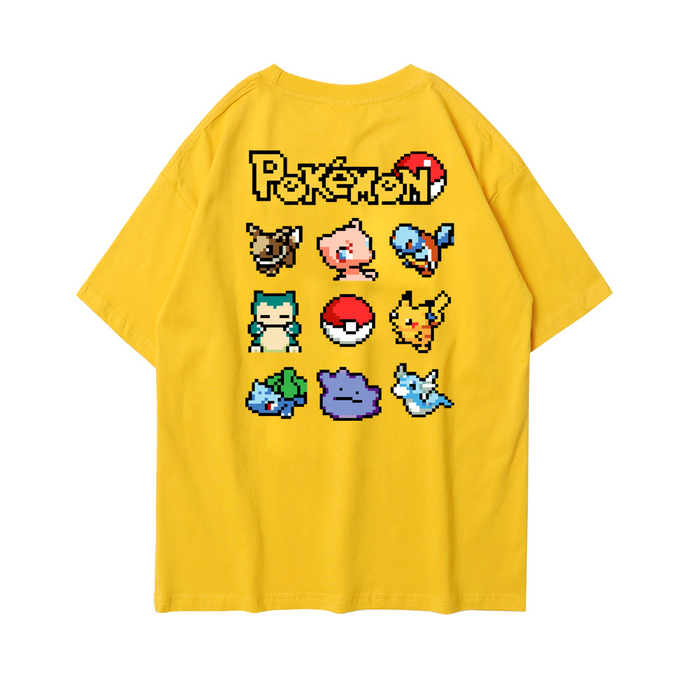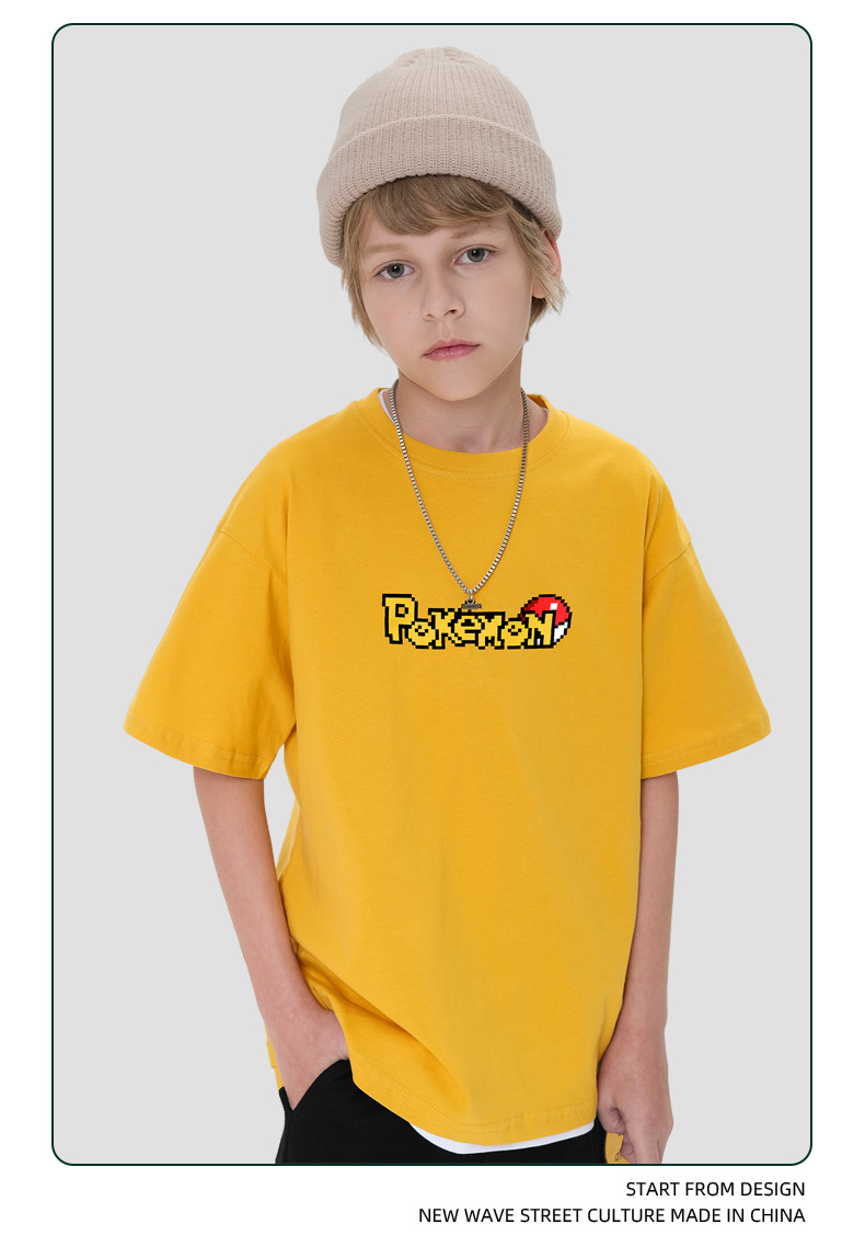 2025 여름 코튼 탑 포켓몬 만화 아바타 모자이크 조합 프린트 티셔츠 소년 소녀 의류 대형 바디