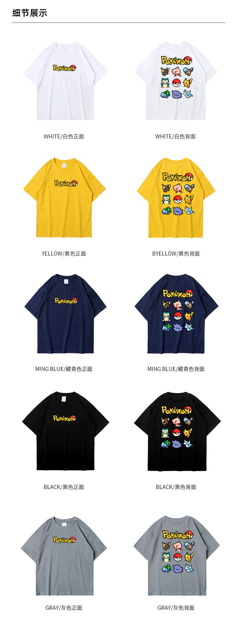 2025 여름 코튼 탑 포켓몬 만화 아바타 모자이크 조합 프린트 티셔츠 소년 소녀 의류 대형 바디스토어 가기