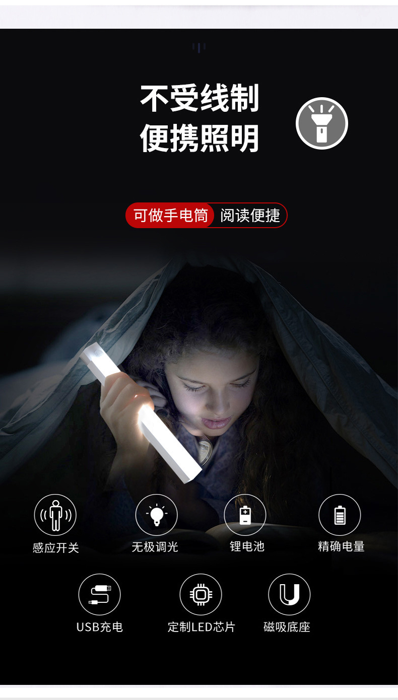 새로운 스마트 LED 스트립 USB 충전식 인체 유도 야간 조명 캐비닛 현관 자기 야간 조명 도매