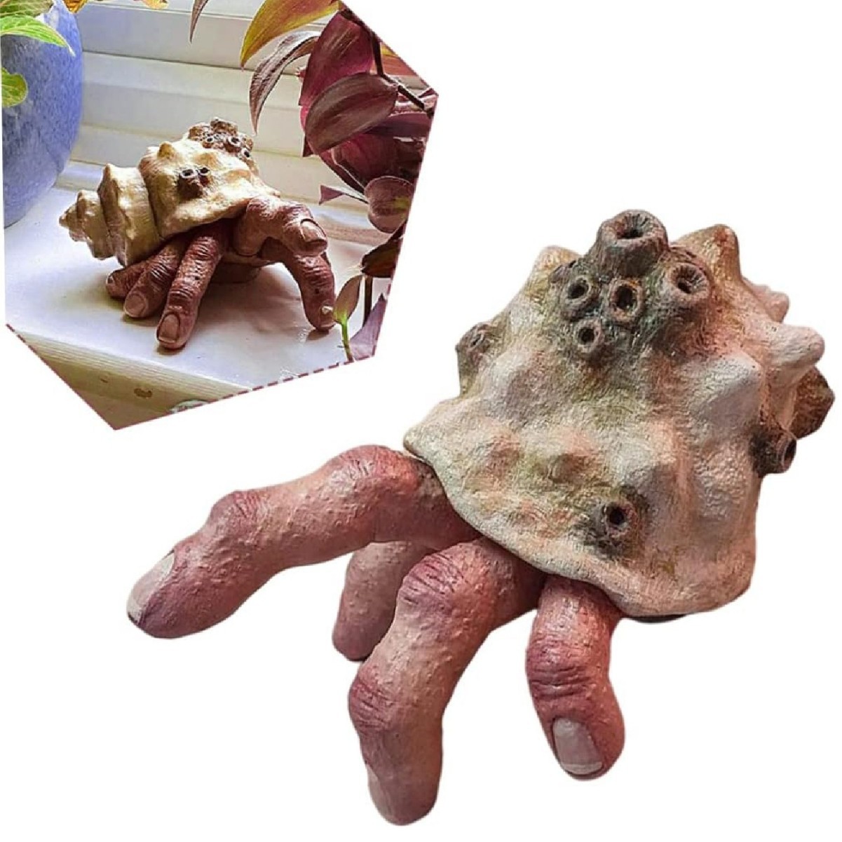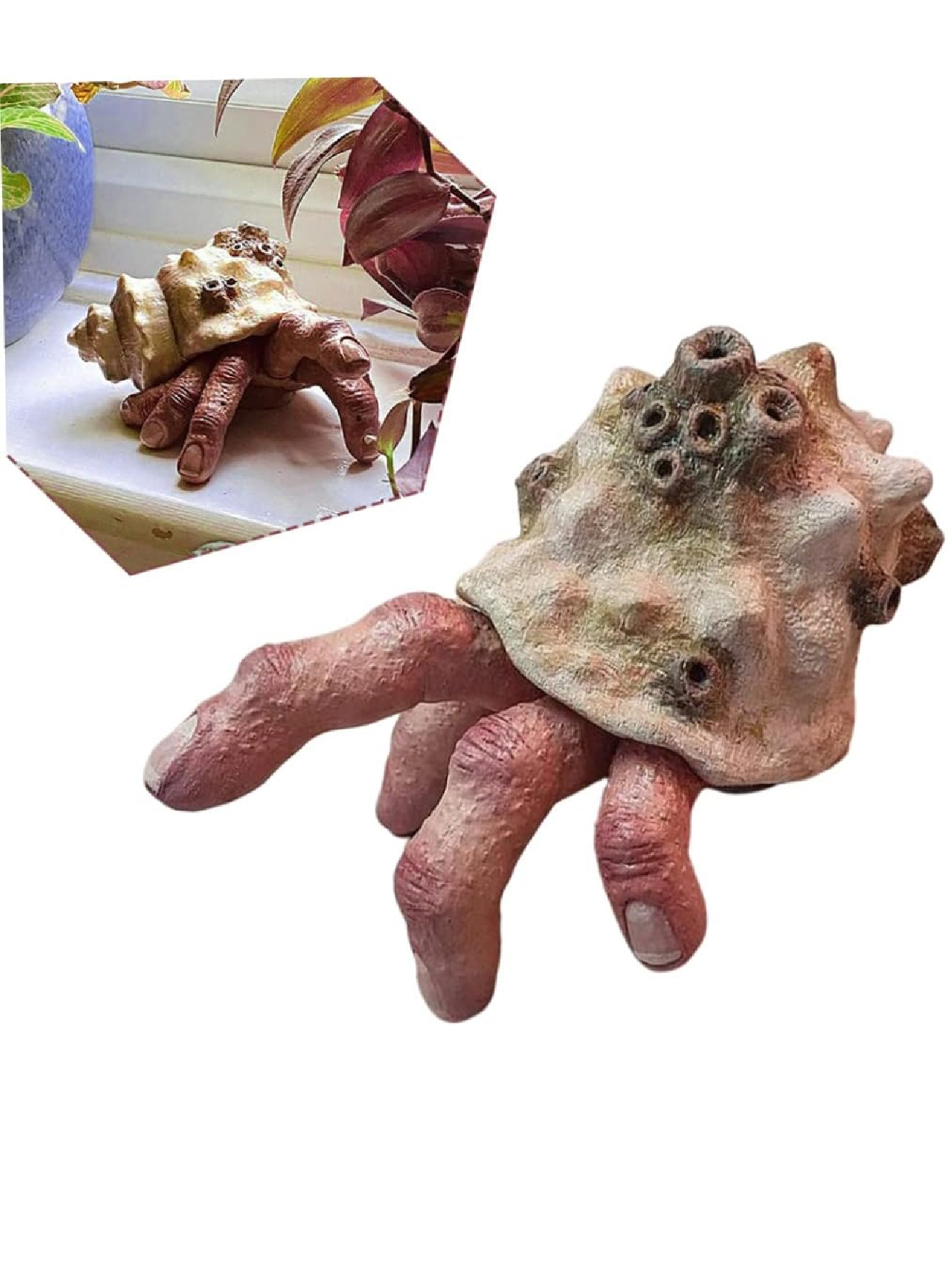 손가락에 앉아 있는 게 조각상, 무서운 달팽이 손 수지 장식품, 할로윈 정원 장식 소품, 공포풍스토어 가기