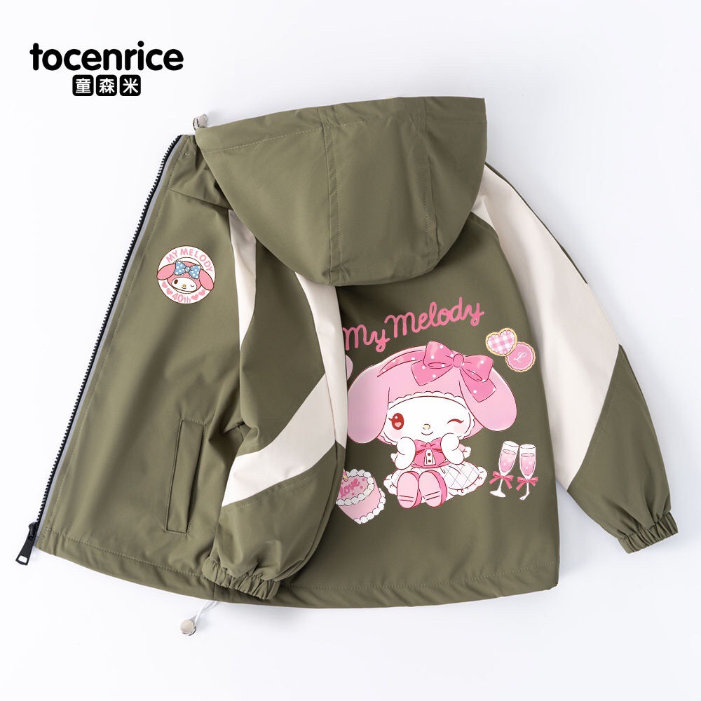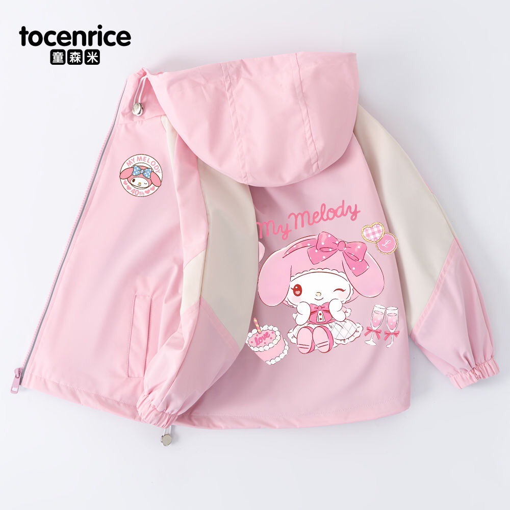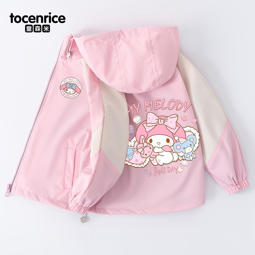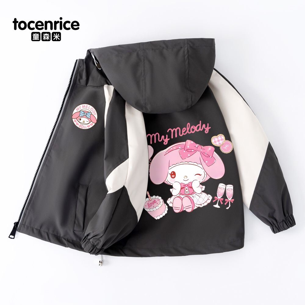 Mymelody 멜로디 소녀 코트 봄과 가을 소녀 2024 새로운 한국식 유행 후드 윈드 브레이커스토어 가기