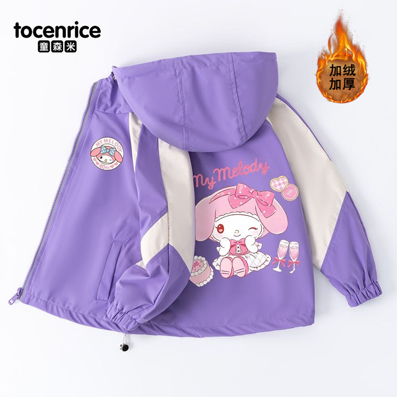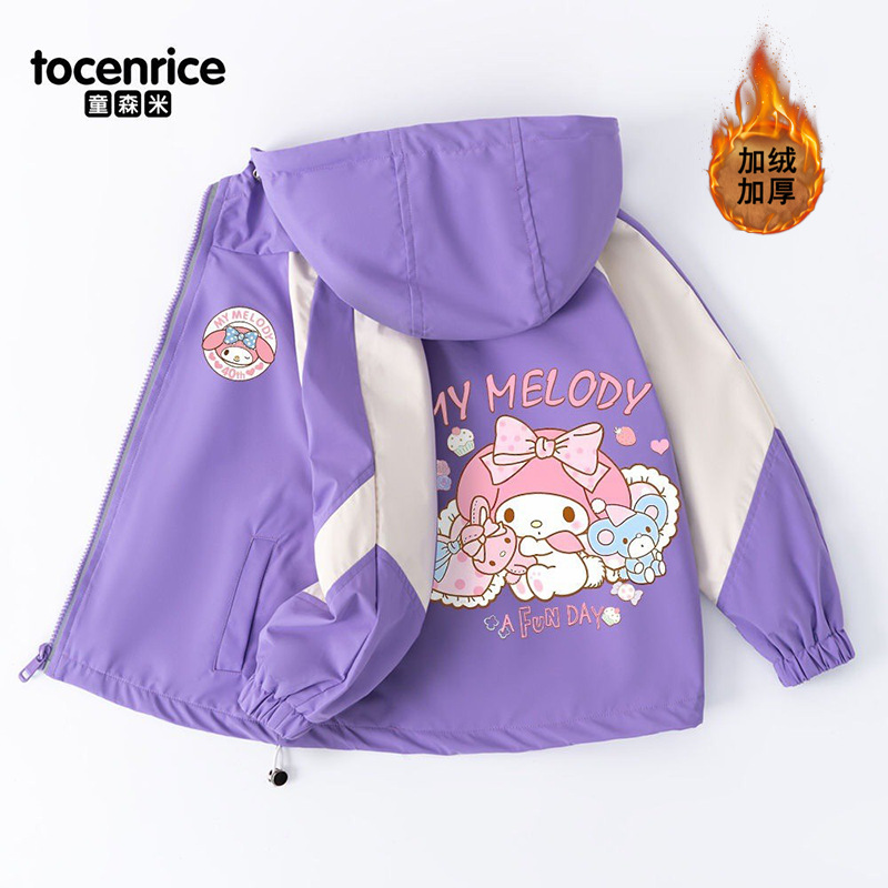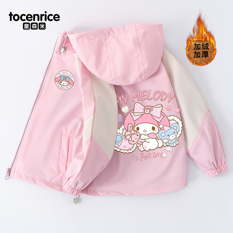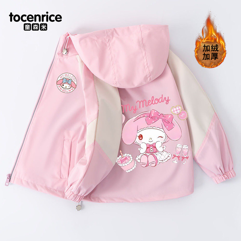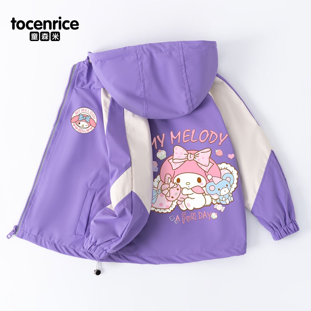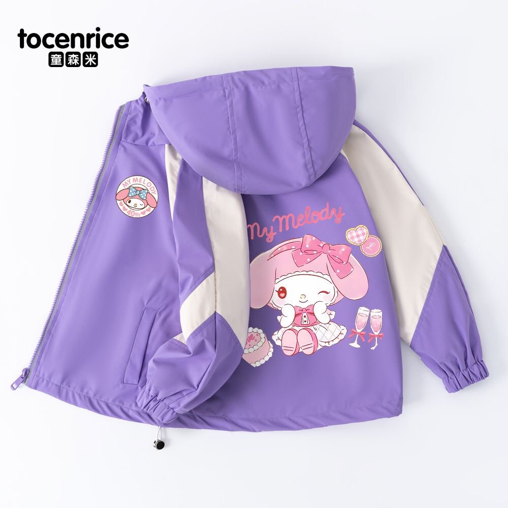Mymelody 멜로디 소녀 코트 봄과 가을 소녀 2024 새로운 한국식 유행 후드 윈드 브레이커스토어 가기