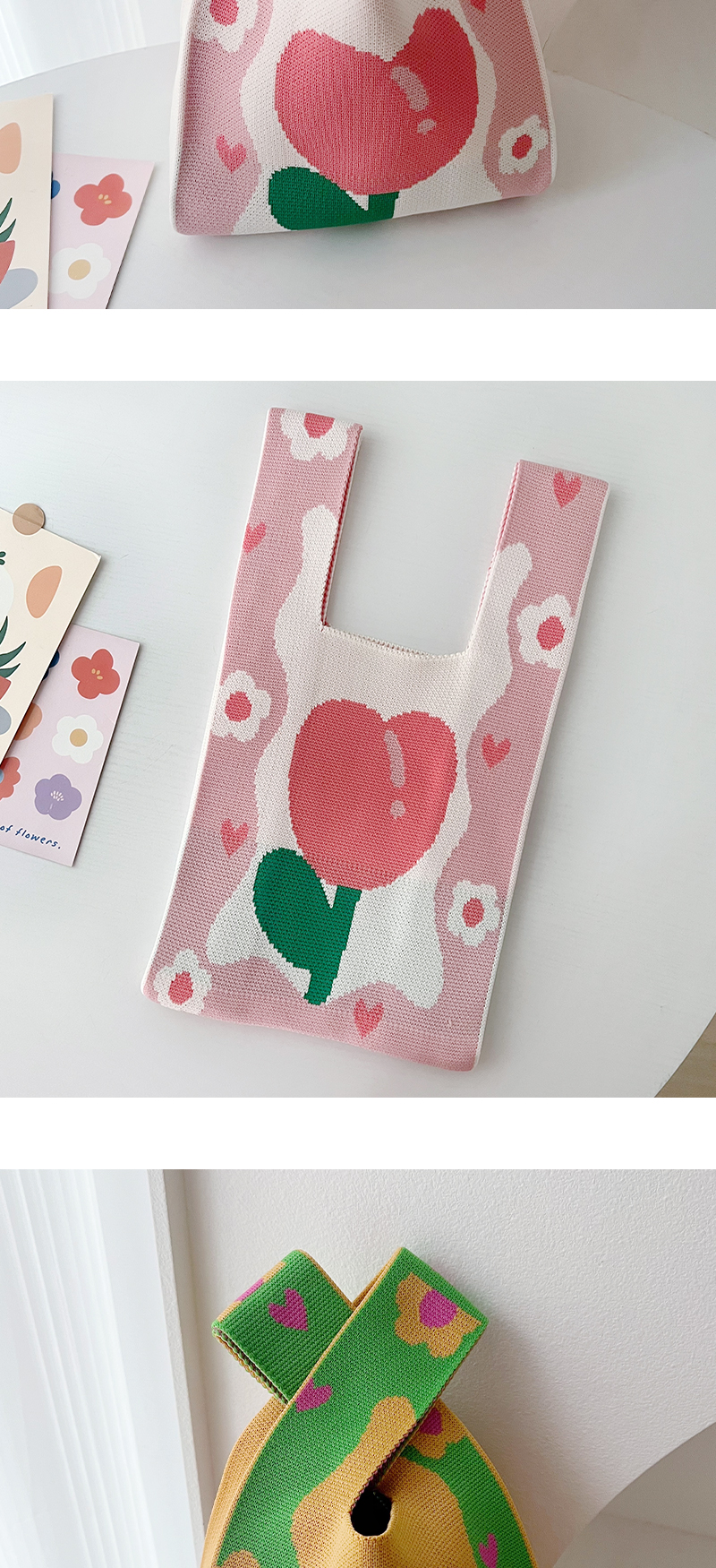 틈새 디자인 튤립 꽃 니트 핸드백 여성 봄과 여름 새로운 올 매치 맞춤형 트렌디 핸드백스토어 가기