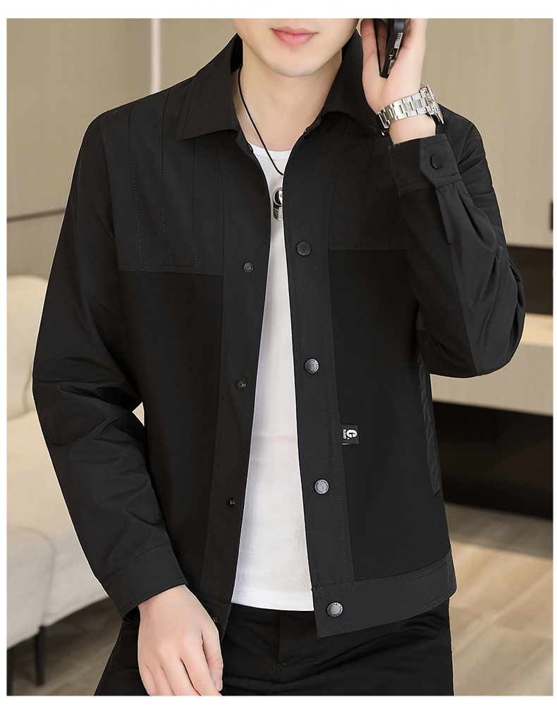 남성 자켓 2024 봄과 가을 새로운 작업복 남성 패션 캐주얼 통근자 착용 블랙 탑