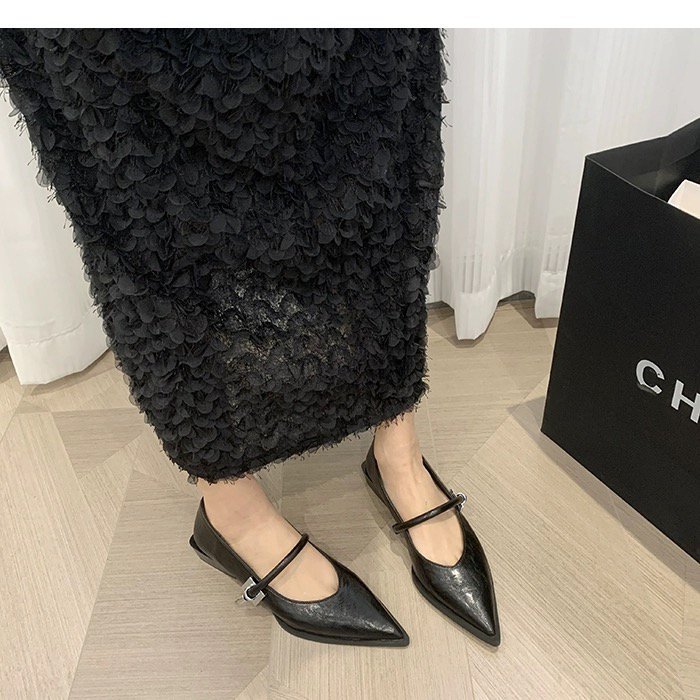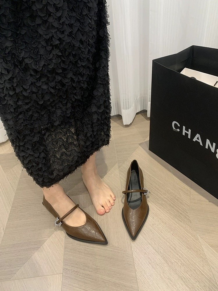 레트로 뾰족한 발가락 싱글 레이어 신발 올 매치 원 스트랩 캐주얼 청키 힐 로우 입 여성 신발 새로운 한국식 금속 버클 로우 힐 여성 신발스토어 가기
