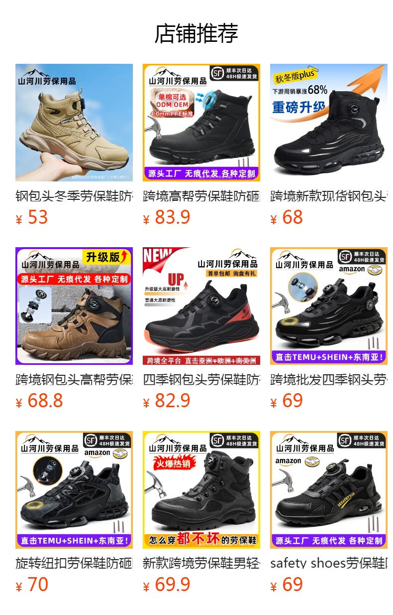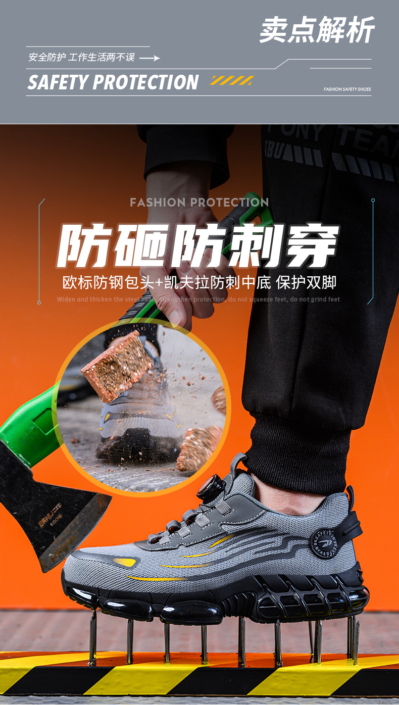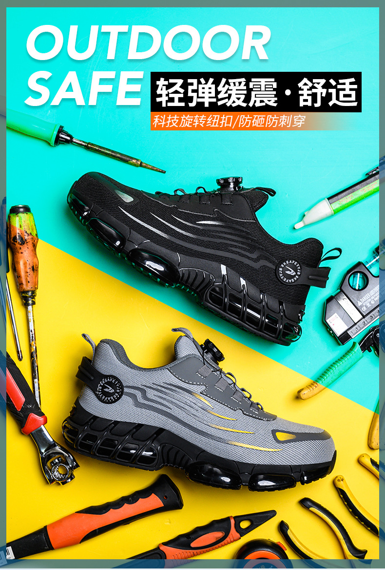 사계절용 강철 토 안전화, 충격 방지 및 관통 방지 작업화, 통기성, 가볍고 편안한 버튼식 안전화스토어 가기