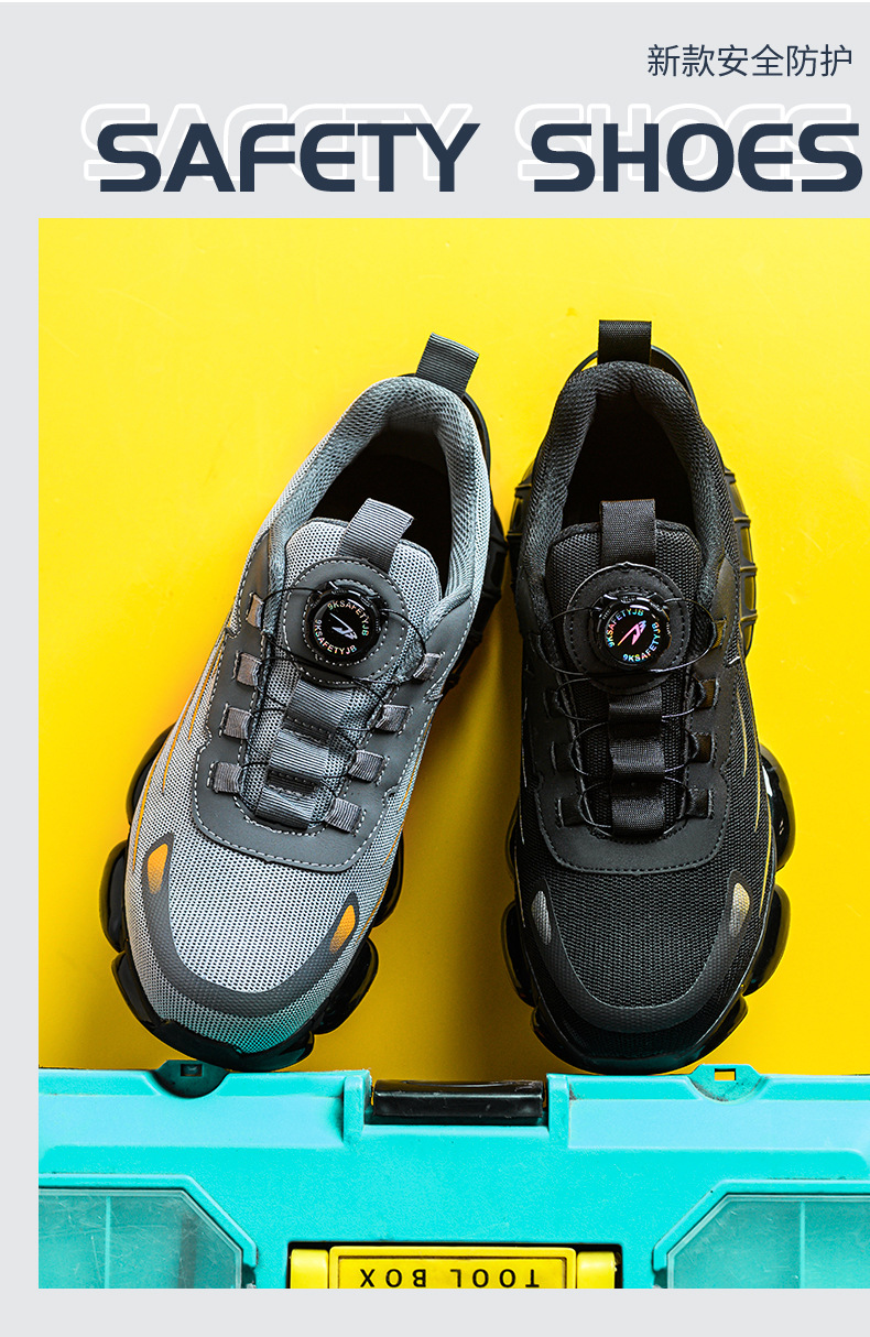 사계절용 강철 토 안전화, 충격 방지 및 관통 방지 작업화, 통기성, 가볍고 편안한 버튼식 안전화