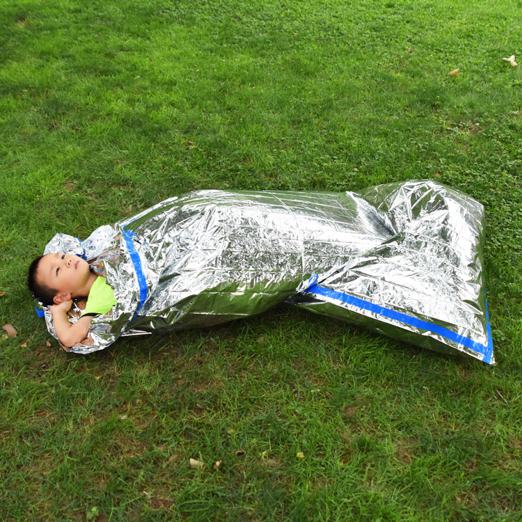 야외 비상 특수 PE 알루미늄 필름 비상 침낭 캠핑 침낭 비상 용품 생명을 구하는 침낭 단열 담요 실버