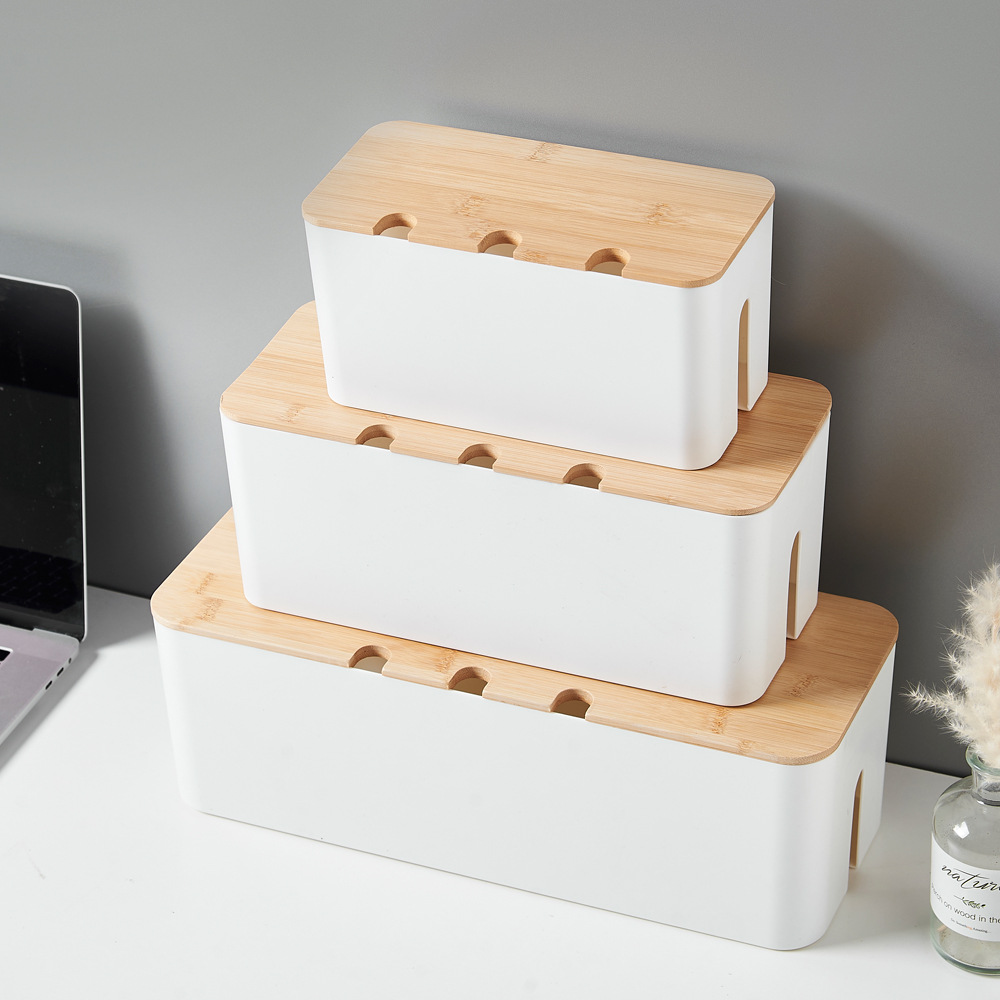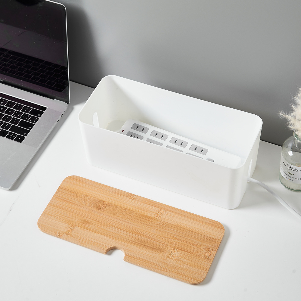 와이어 스토리지 박스 대나무 나무 커버 로우 플러그 박스 플러그 로우 박스 케이블 박스 전원 코드 충전기 데이터 케이블 주최자