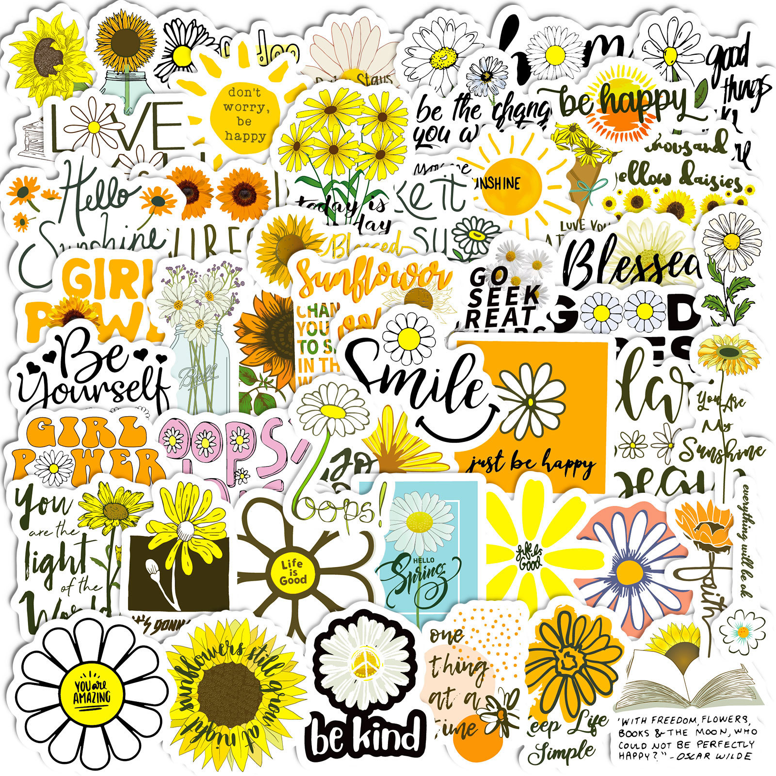 50 스몰 사이즈 4cm 텍스트 스티커 해바라기 해바라기 컵 트롤리 케이스 영감 텍스트 스티커