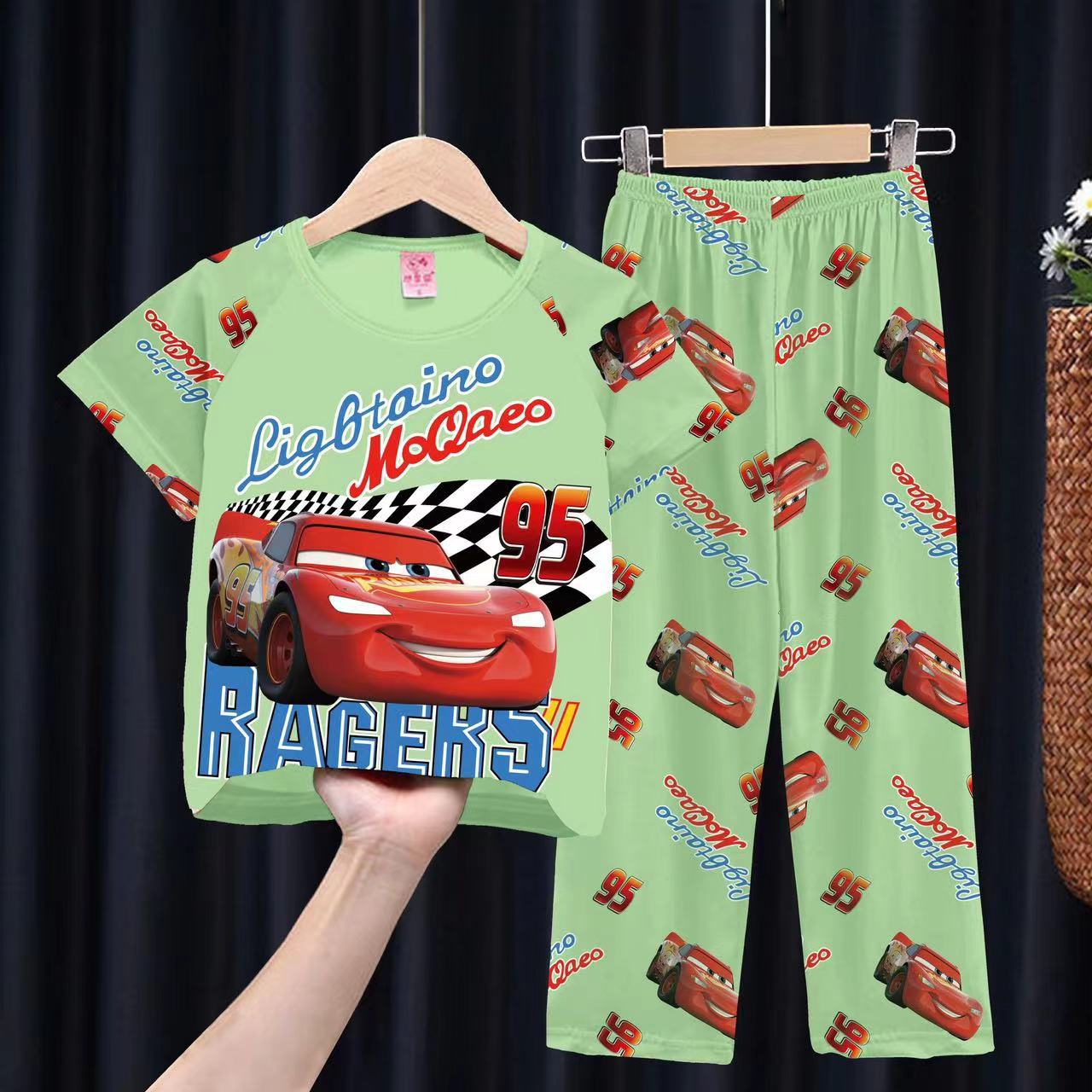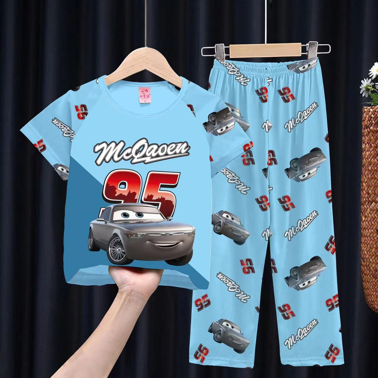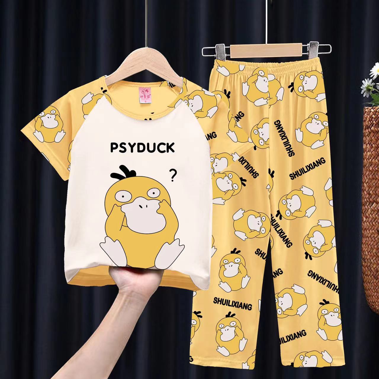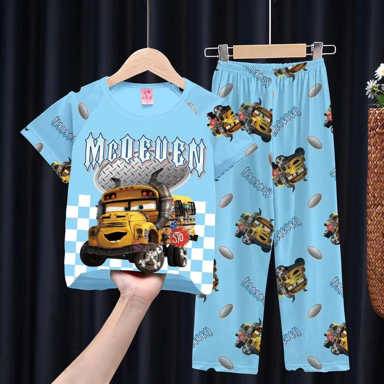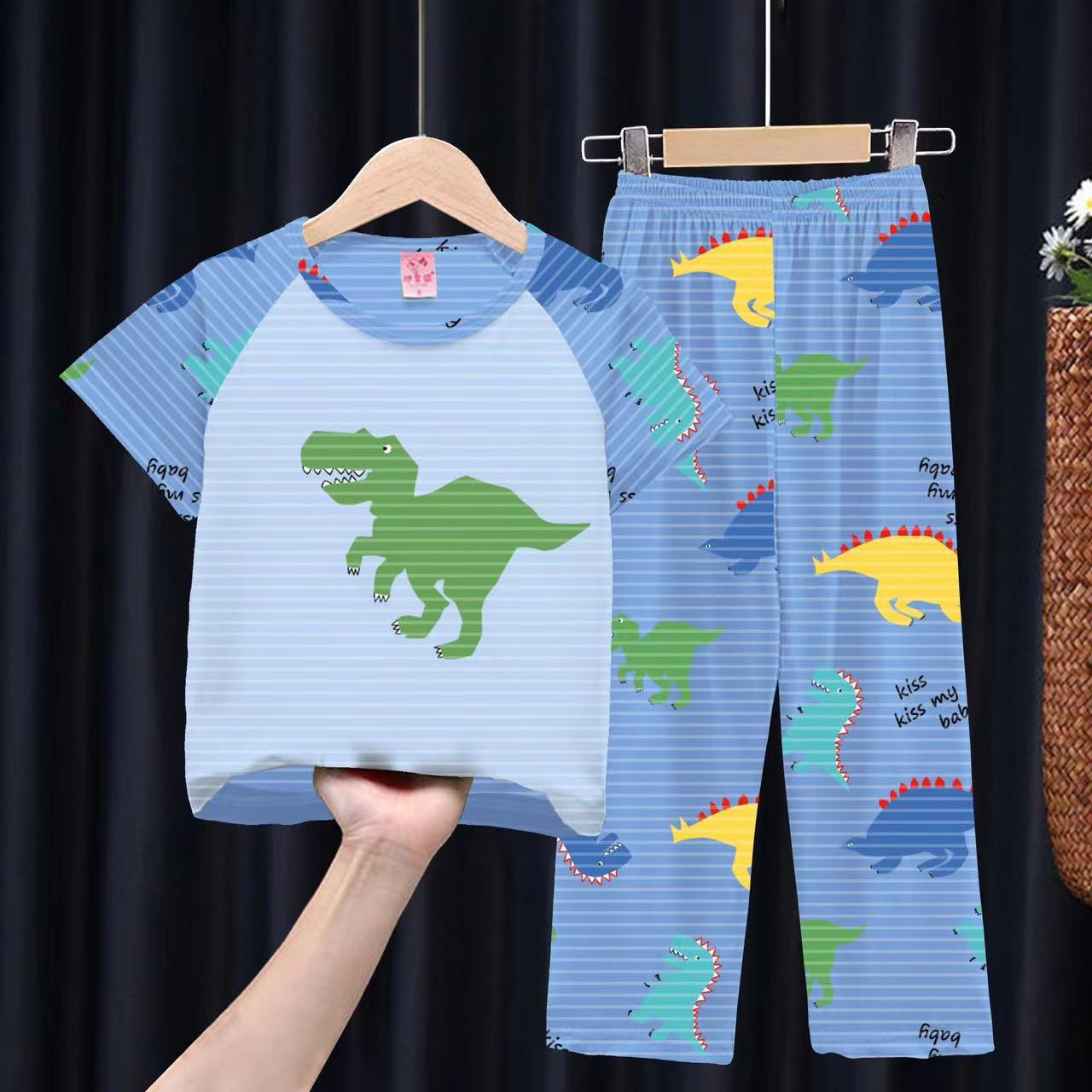 여자 잠옷 여름 어린이 반팔 바지 얇은 중형 및 큰 어린이 아기 만화 공주 소녀의 홈웨어 세트