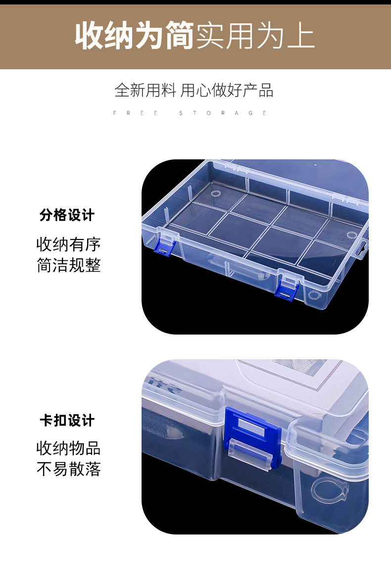 투명 PP 플라스틱 상자 이중 잠금 샘플 보관 상자 하드웨어 낚시 용품 액세서리 도구 상자 빈 상자 밀봉스토어 가기