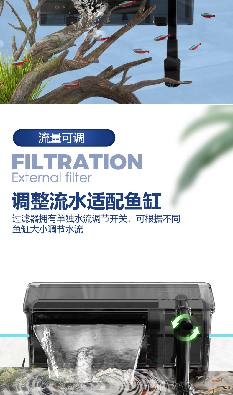 어항 벽걸이 폭포 필터 다층 필터 흐름 조절 가능한 3 대 1 정수 필터 순환 필터