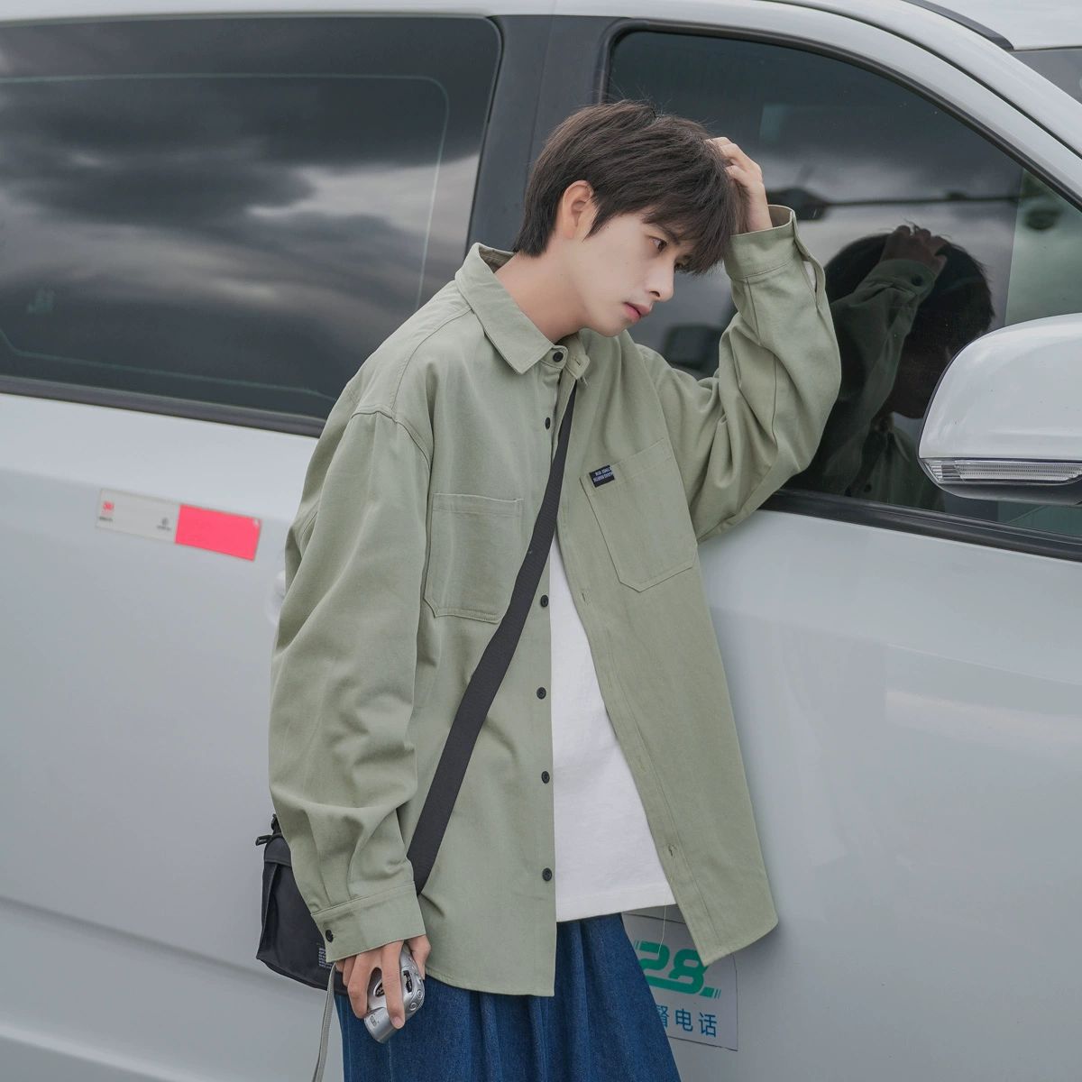 일본식 검은 색 작업복 긴팔 셔츠 코트 남성용 2024 새 코트 봄과 가을 복고풍 올 매칭 느슨한 셔츠