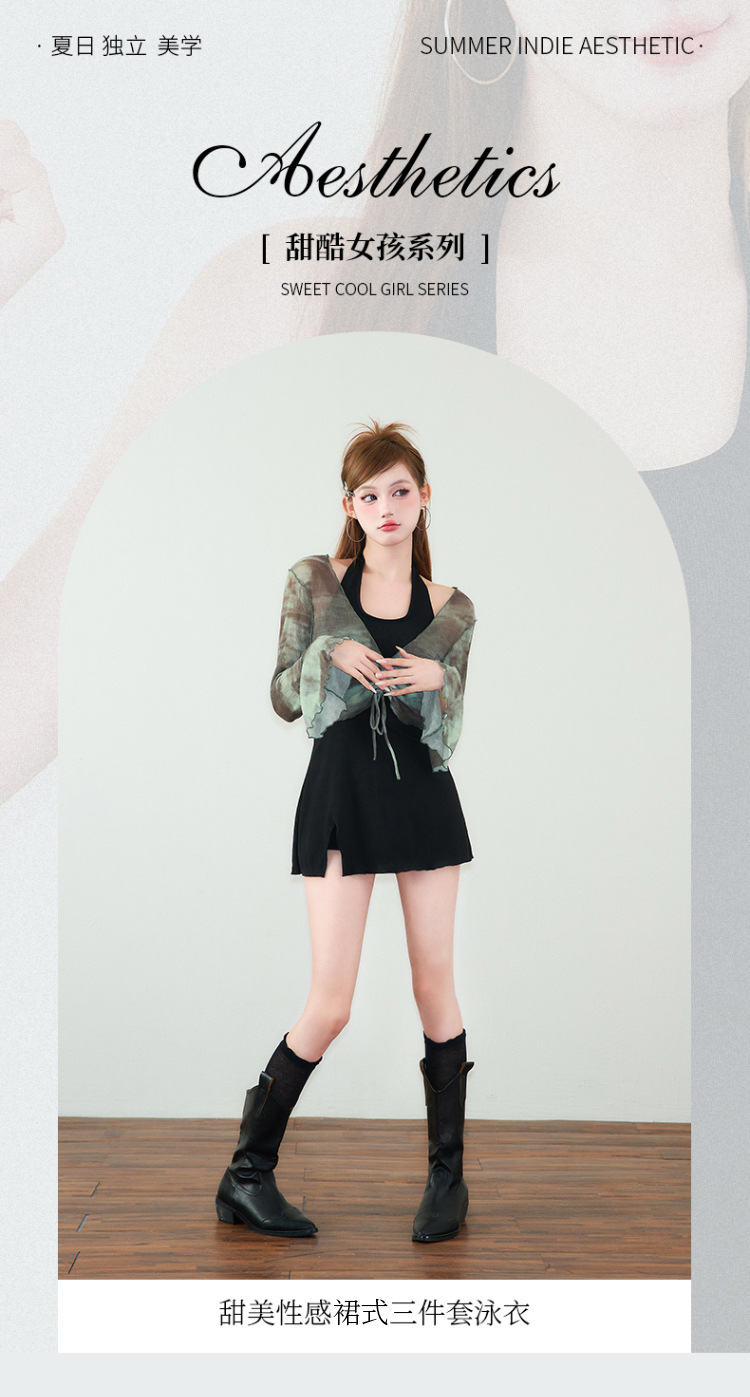 통통녀 수영복 여성의 보수적 인 스플릿 슬리밍 배꼽 커버 복서 3 피스 세트 2023 새로운 고급 수영복스토어 가기