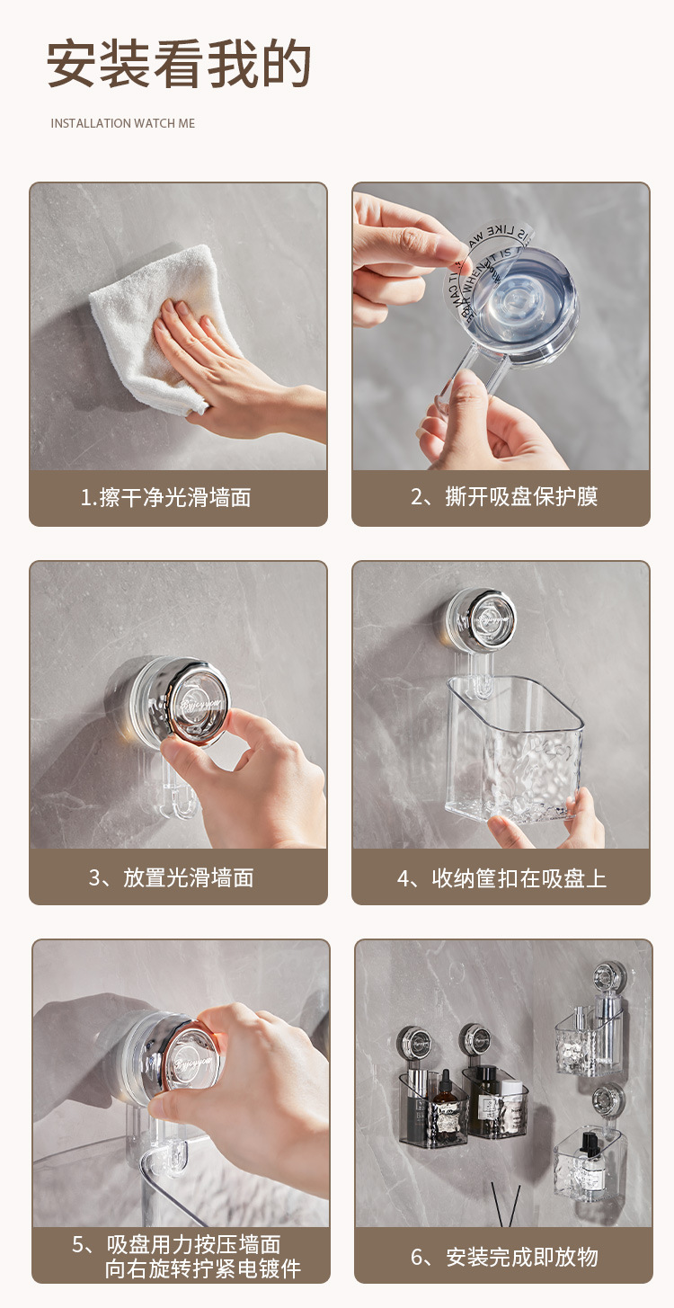 흡착식 수납선반, 욕실 수납 바구니, 욕실 흡착식 세면대, 화장실 걸이형 바구니, 공간 절약