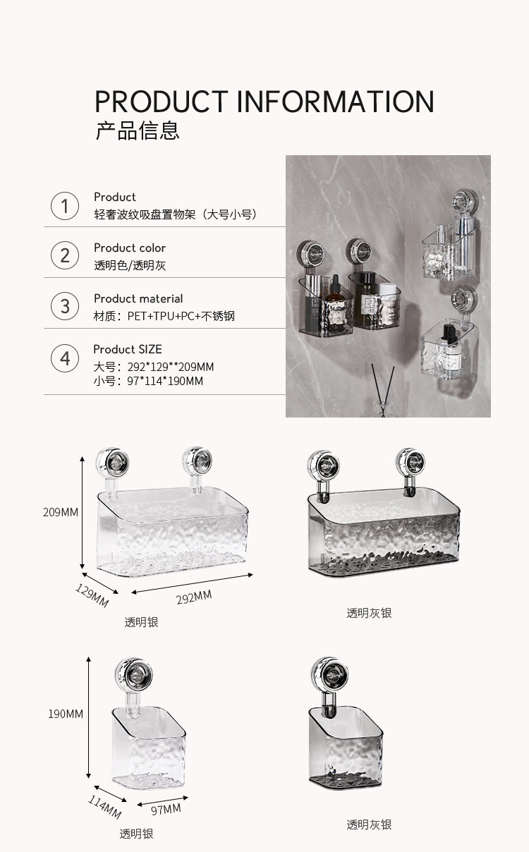 • 가벼운 고급 골판지 흡입 컵 보관 랙 대형 - 투명 회색 은색