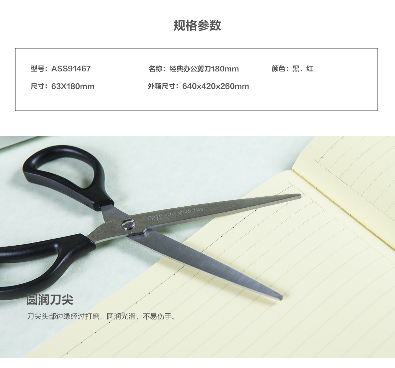 M&G 클래식 사무용 가위 ASS91467 종이 절단용 180mm 날카롭고 내구성이 뛰어난 가정용 가위