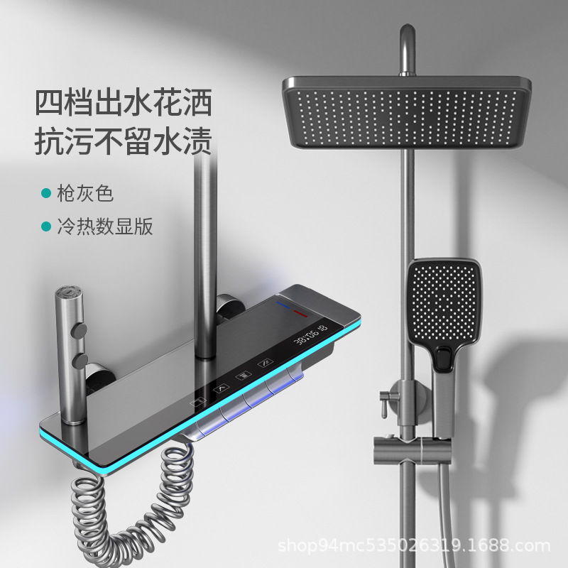 모든 구리 바디 지능형 디지털 디스플레이 샤워 헤드 세트 가정용 욕실 일정한 온도 총 회색 샤워 노즐 가압 레인 샤워