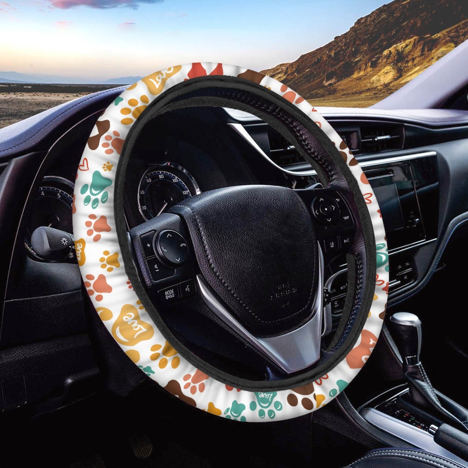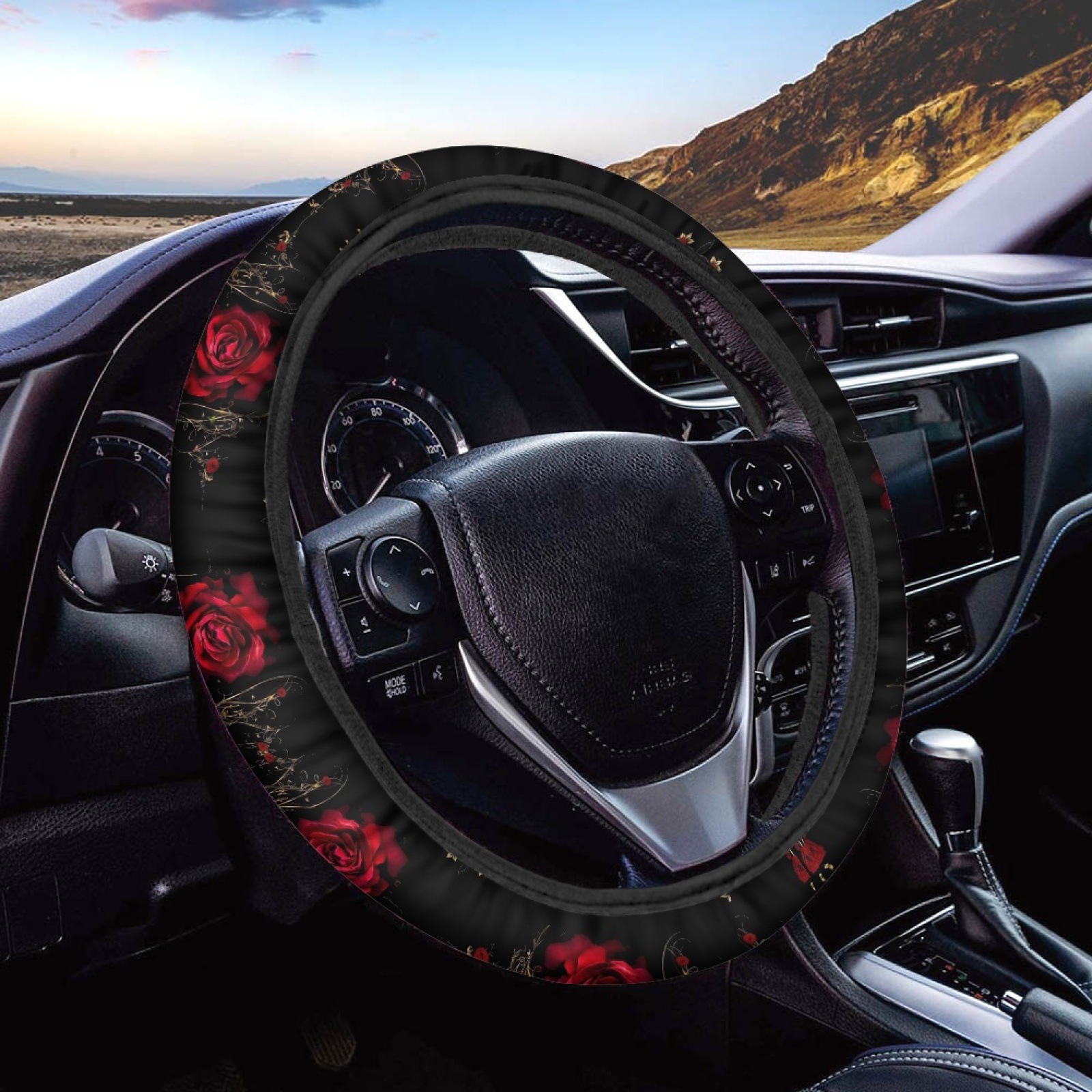 독립 역 자동차 스티어링 휠 커버 빨간 장미 고양이 발톱 사랑 패턴 자동차 스티어링 휠 보호 커버 인쇄스토어 가기