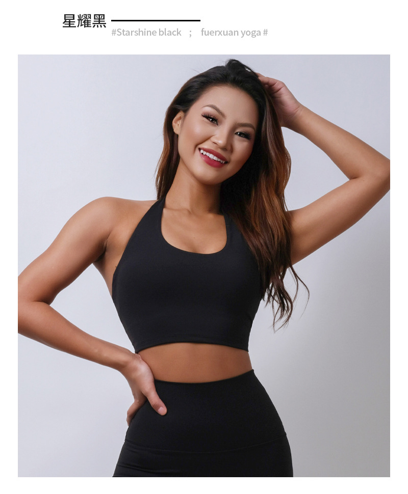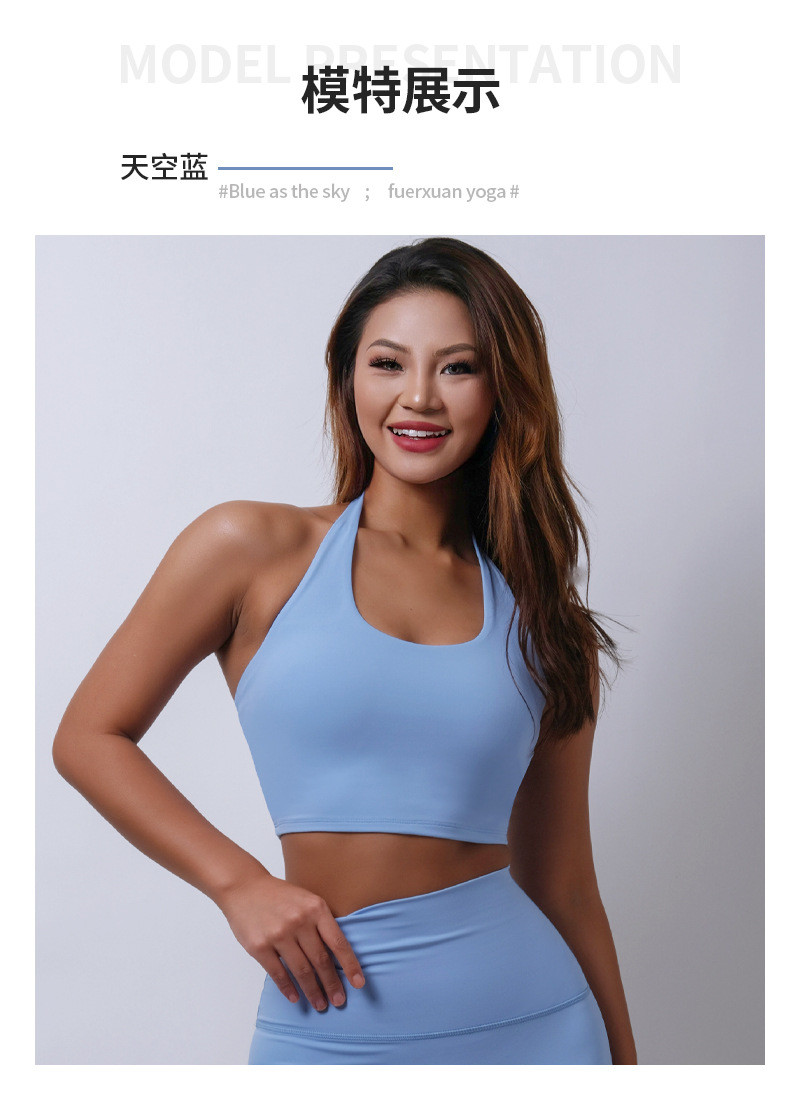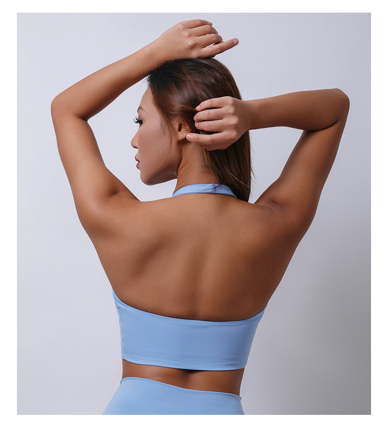 여름 새로운 벌거 벗은 센스 분리 컵 탑 교수형 목 스포츠 조끼 여자 U Leading Step 피트니스 속옷 요가 옷스토어 가기