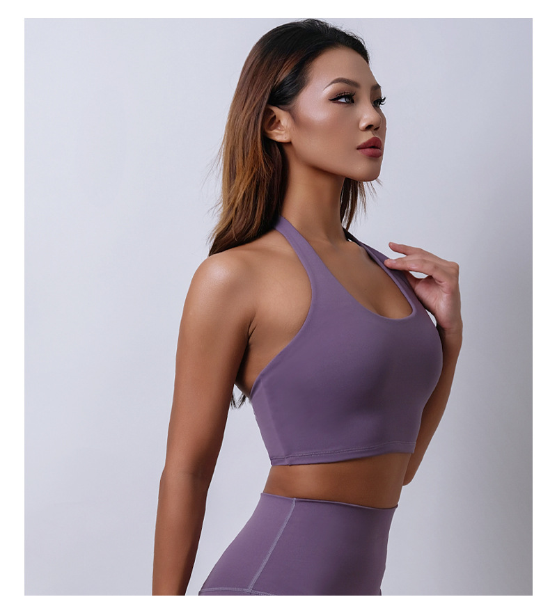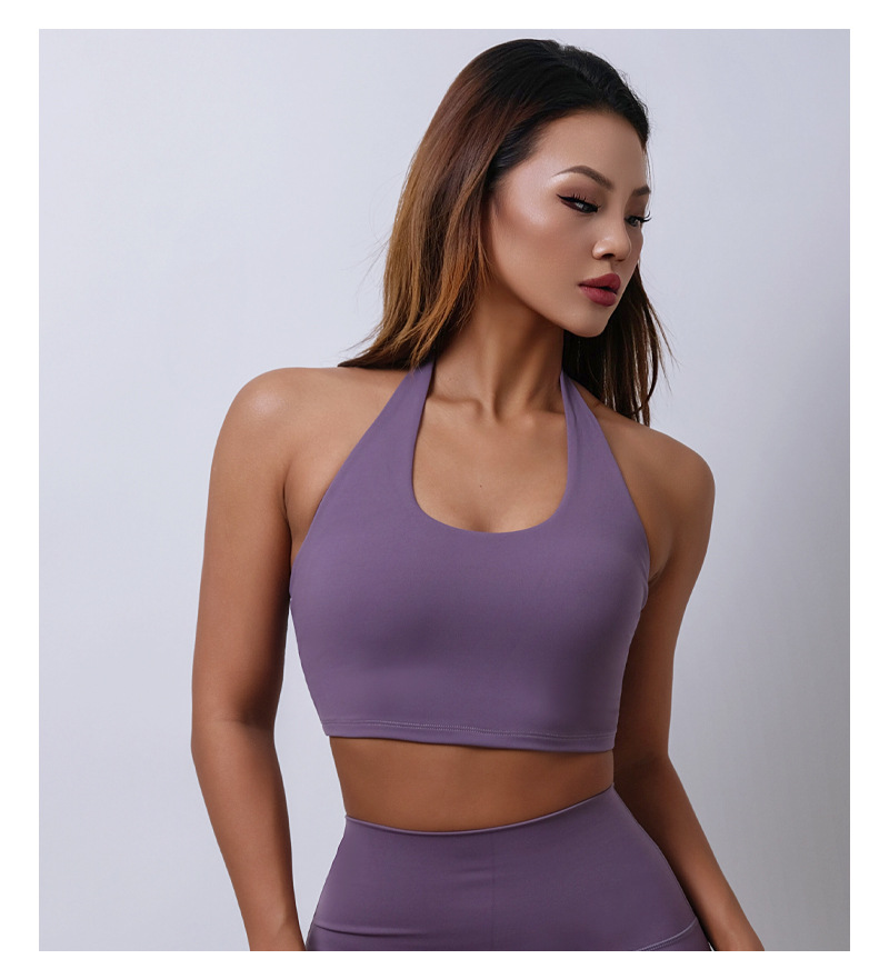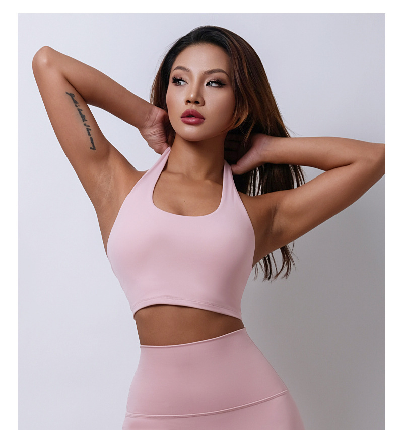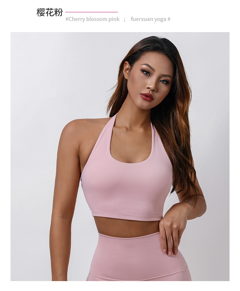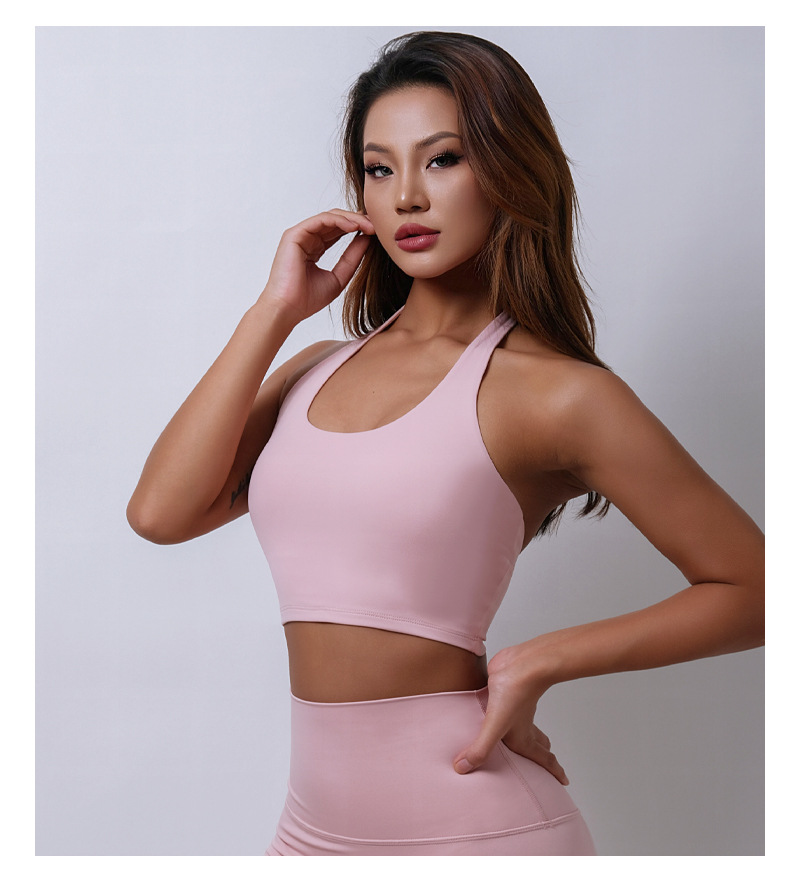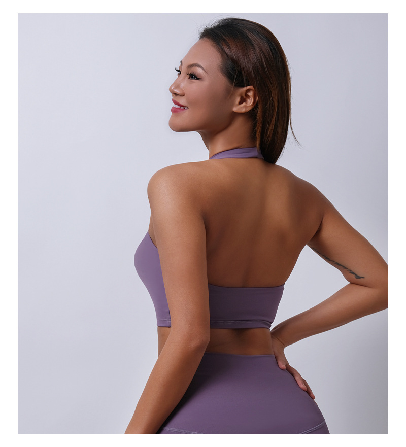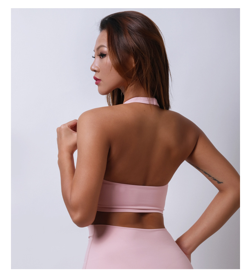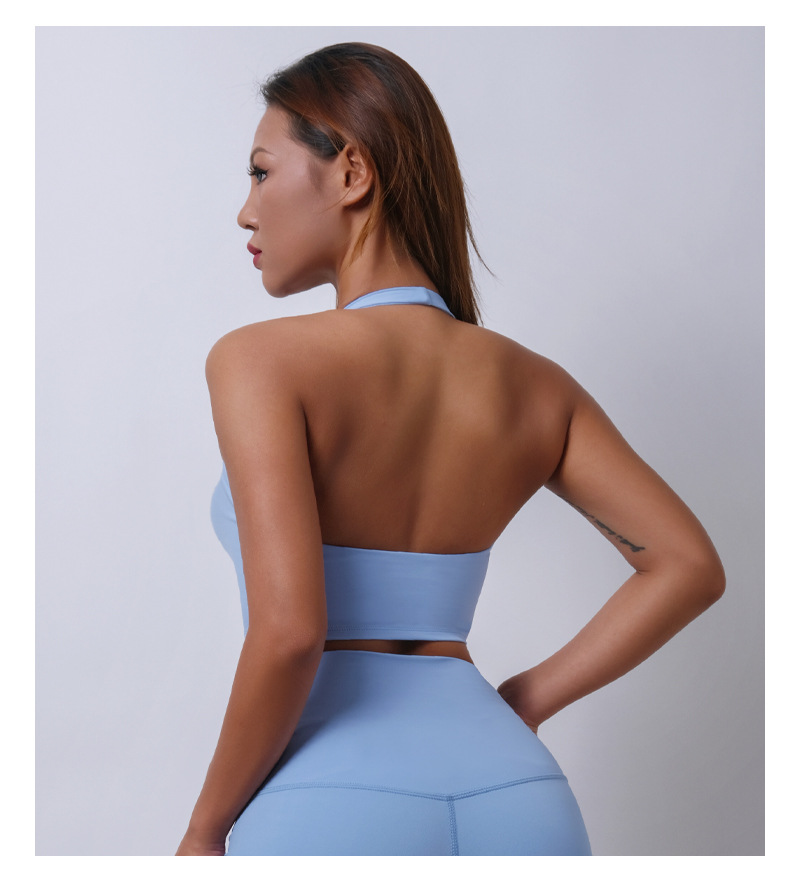 여름 새로운 벌거 벗은 센스 분리 컵 탑 교수형 목 스포츠 조끼 여자 U Leading Step 피트니스 속옷 요가 옷