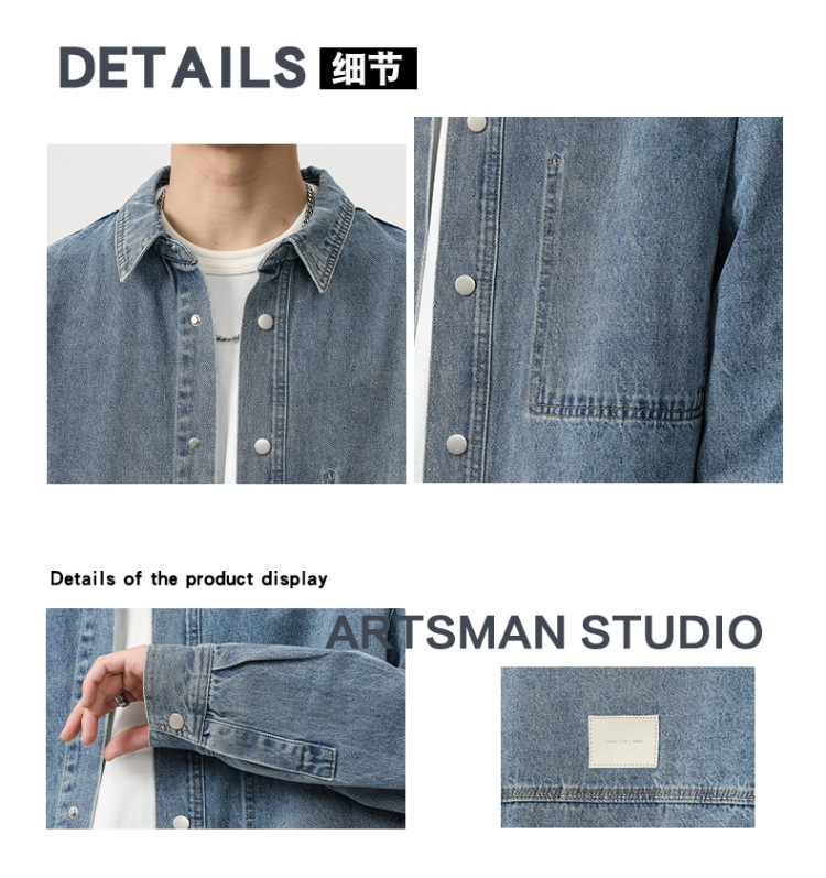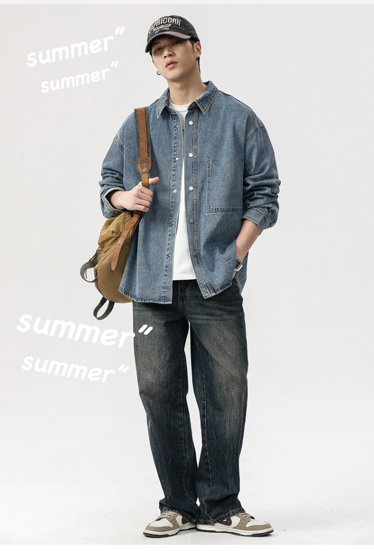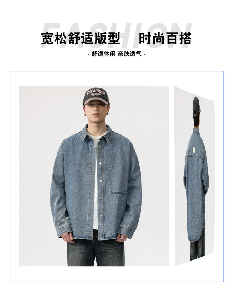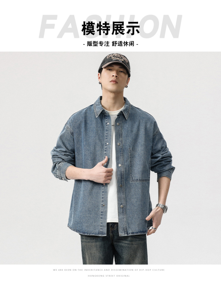 봄 긴 소매 데님 셔츠 남성용 느슨한 복고풍 플러스 사이즈 셔츠 남성용 트렌디 한 캐주얼 올 매치 코트 트렌디 한 봄과 가을스토어 가기