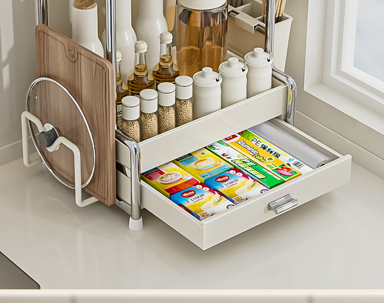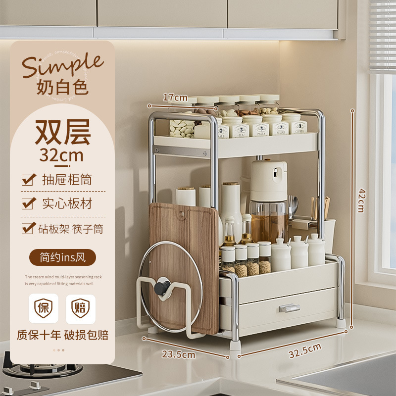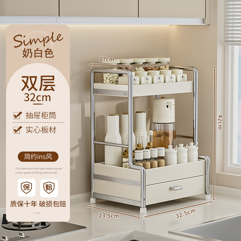 • Ins 스타일 우유 화이트 * 32CM 조미료 랙 * 서랍이있는 더블 레이어 * 메인 랙
