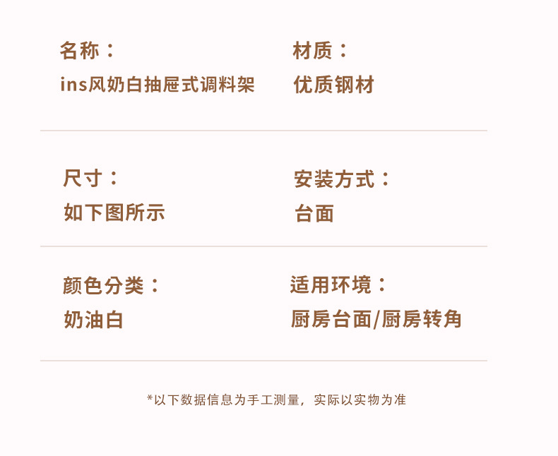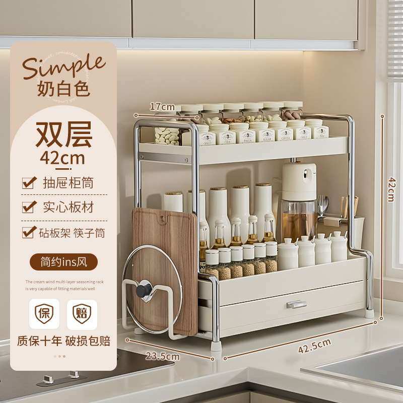 • Ins 스타일 우유 화이트 * 42CM 조미료 랙 * 서랍이있는 더블 레이어 * 메인 랙