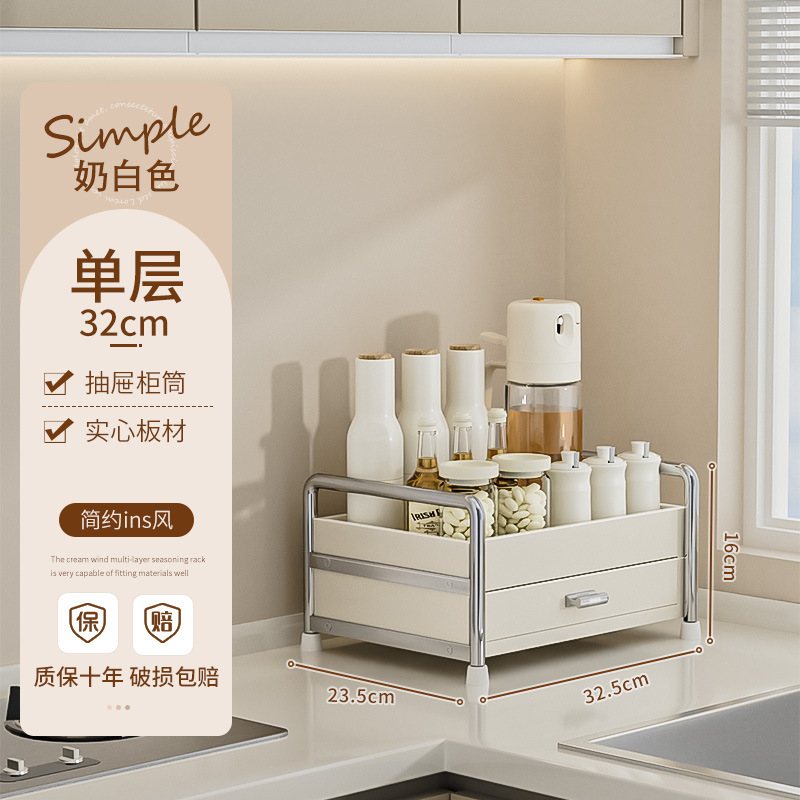 • Ins 스타일 우유 화이트 * 32CM 조미료 랙 * 서랍이있는 단일 레이어