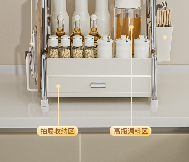In 스타일 스토리지 랙 서랍 조미료 항아리 스토리지 랙 주방 용품 창의적인 새로운 커팅 보드 랙 젓가락 스토리지 랙